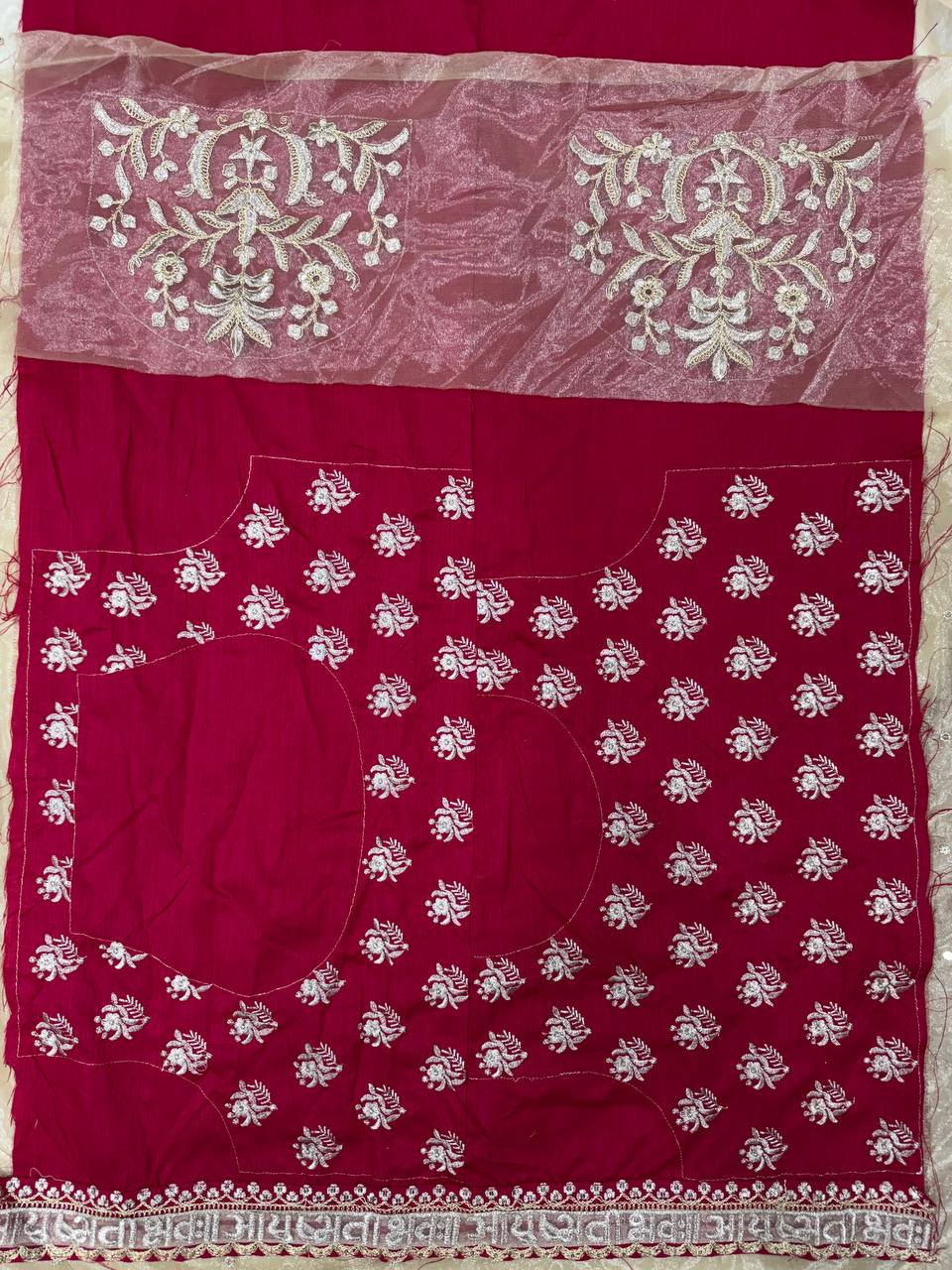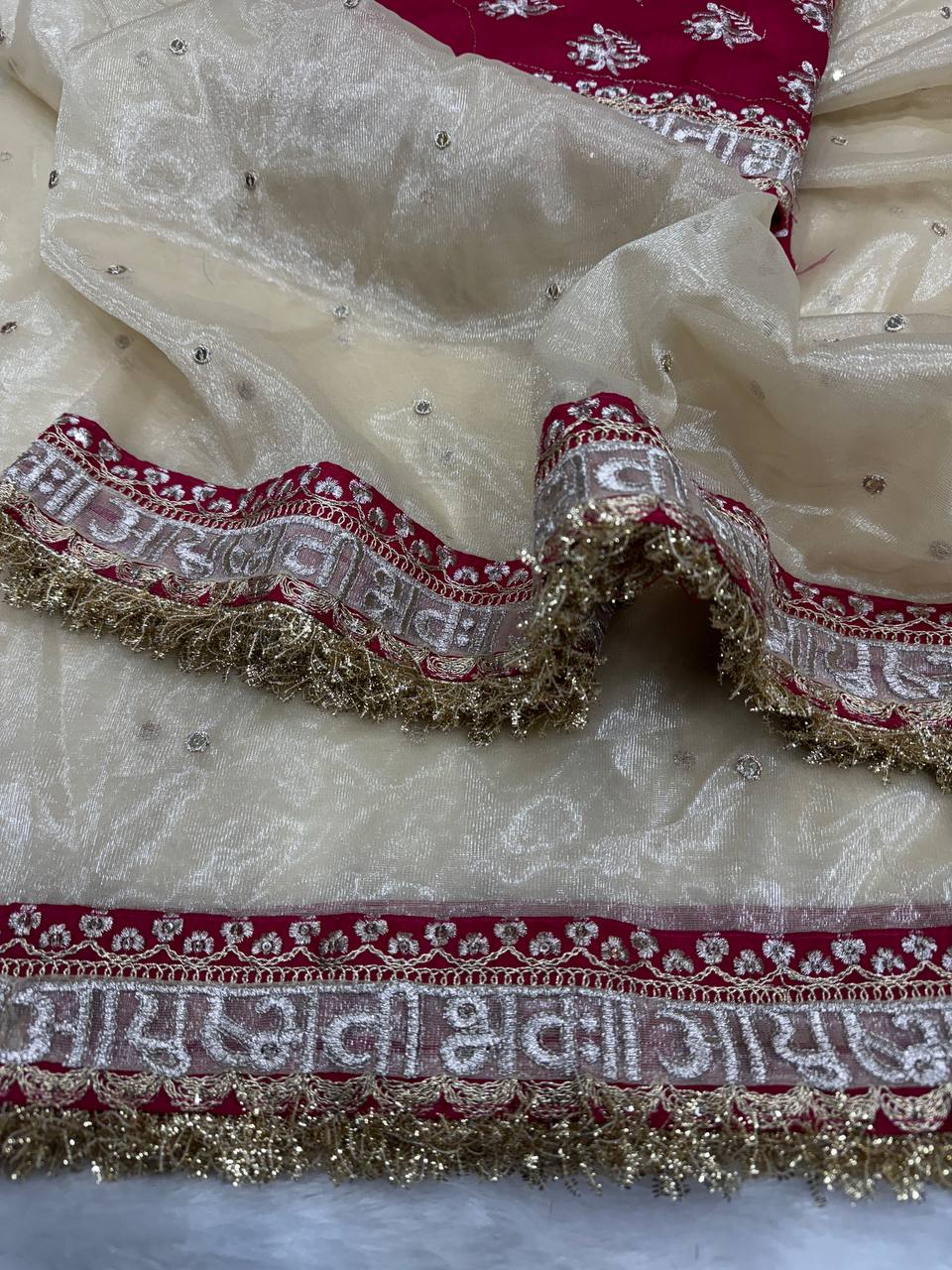 Function Wera Soft Twill Net Cream Saree With Red Work Blouse