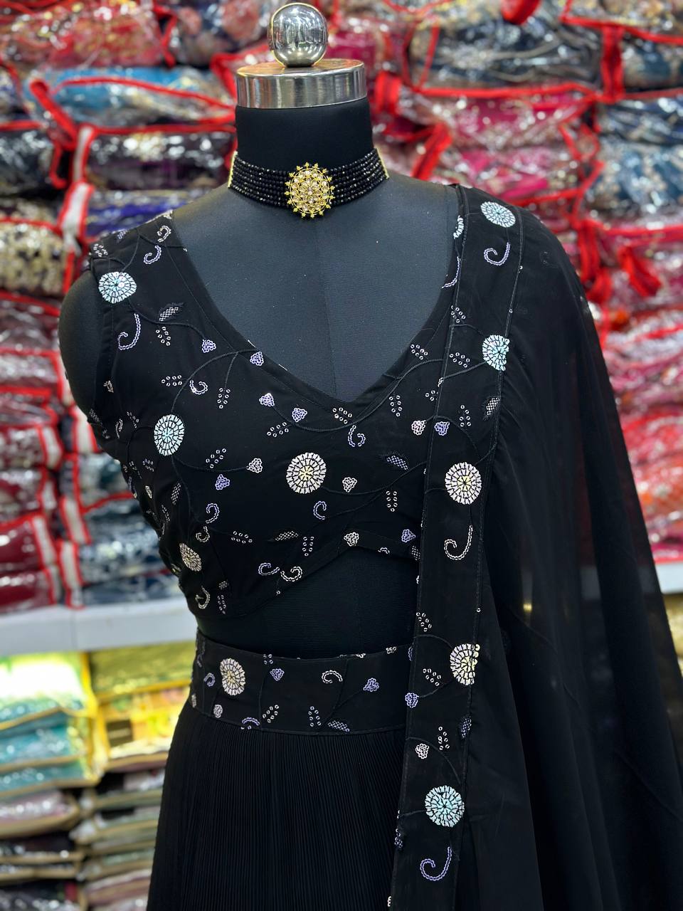 Amazing Black Colour Embroidery Sequence Design Work Lehenga Choli