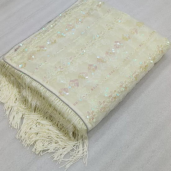 Amazing Ivory Soft Net Sequence Work Saree With Embroidered Blouse