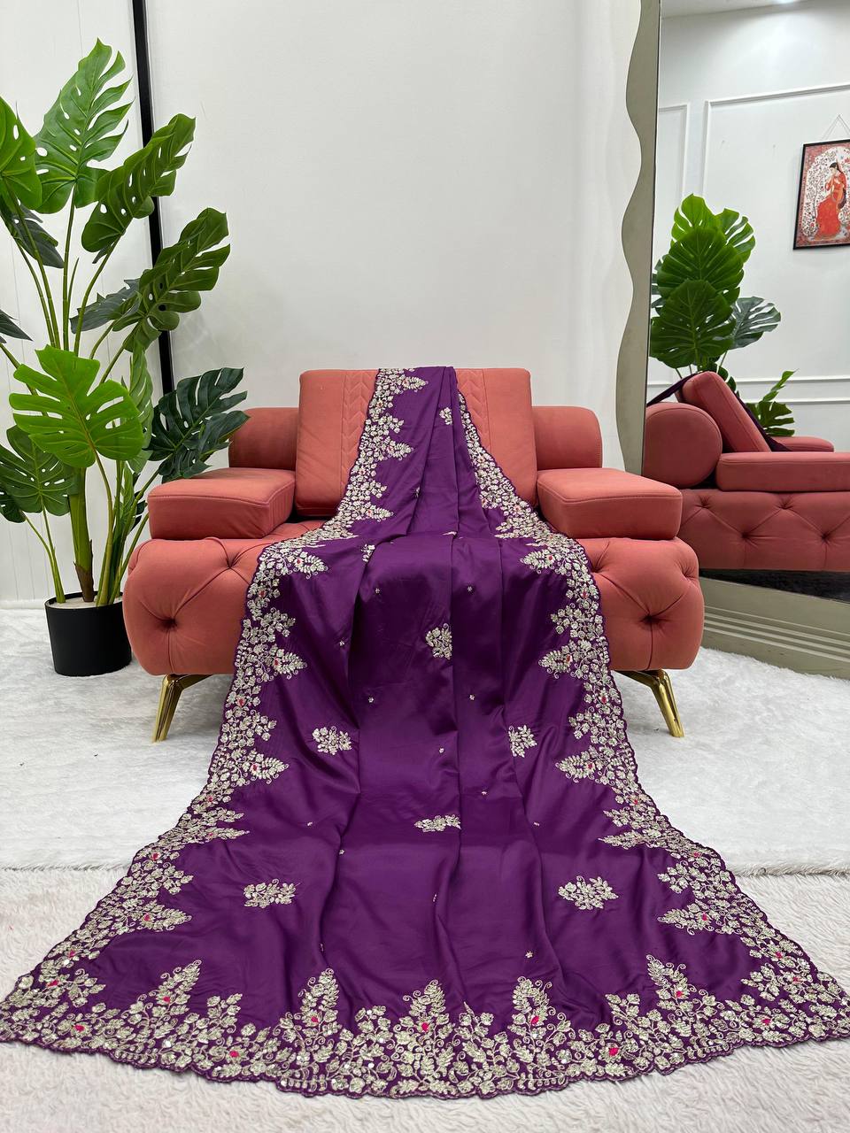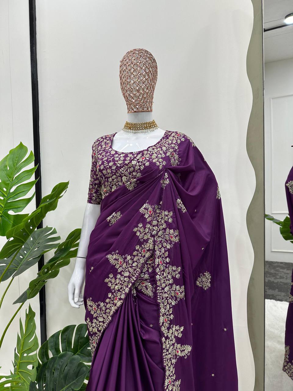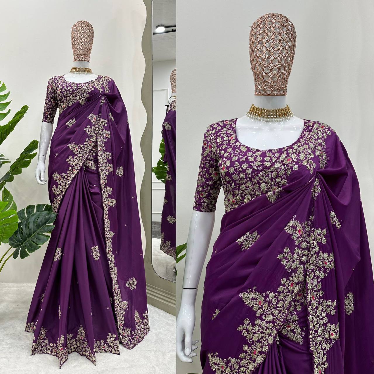 Amazing Purple Colour Jimmy chu Fabric with Thread Work Saree