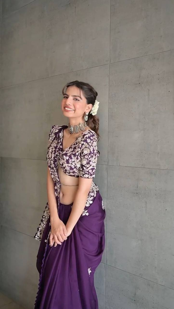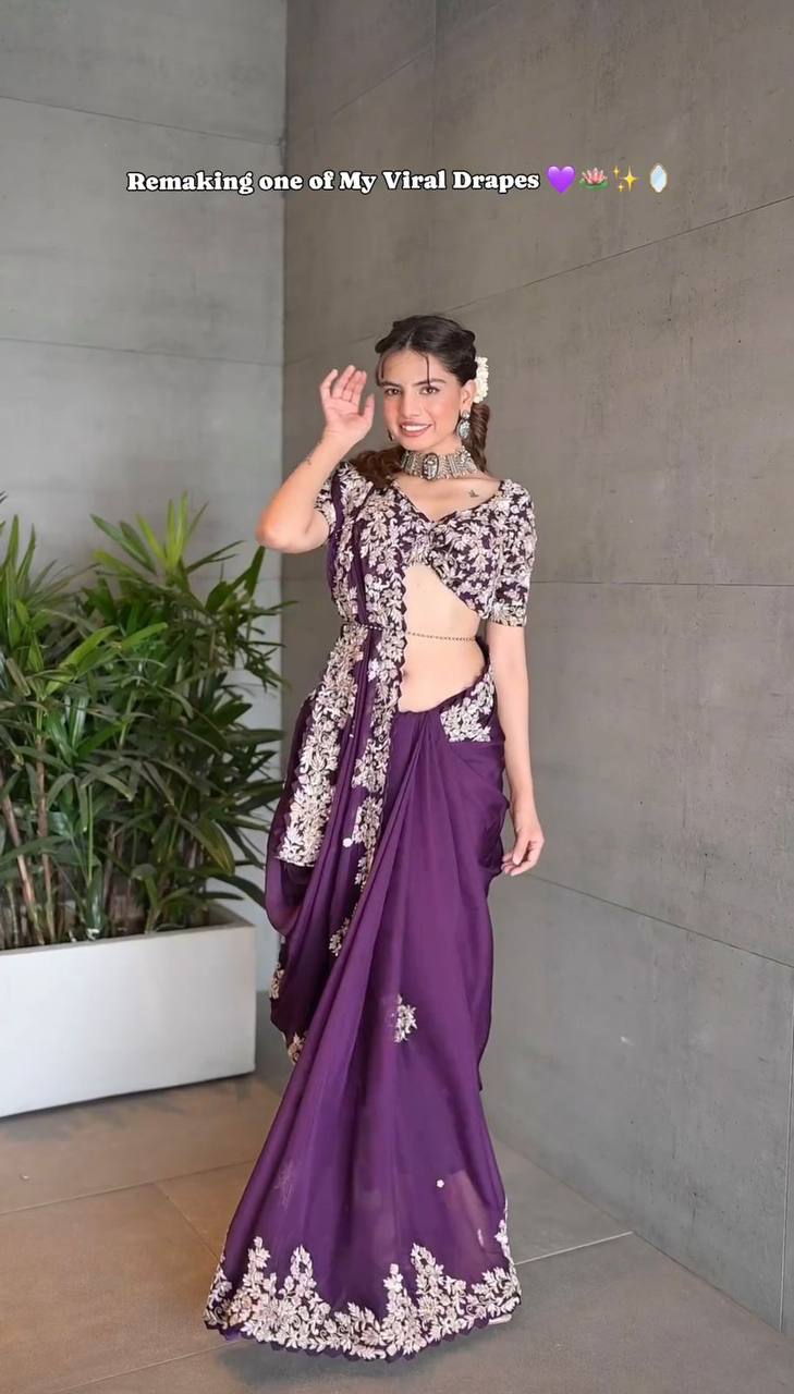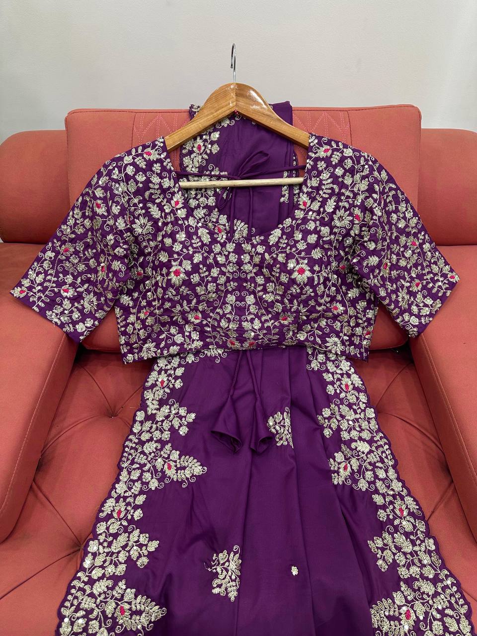 Amazing Purple Colour Jimmy chu Fabric with Thread Work Saree