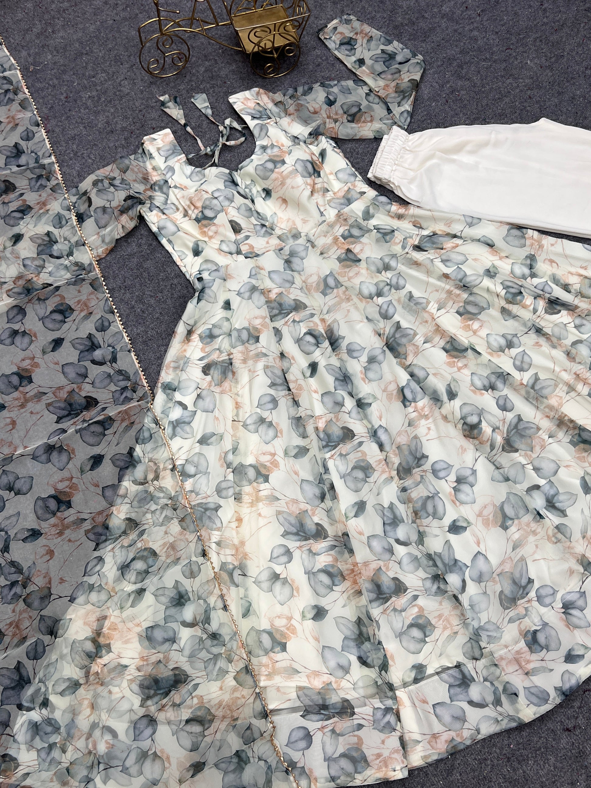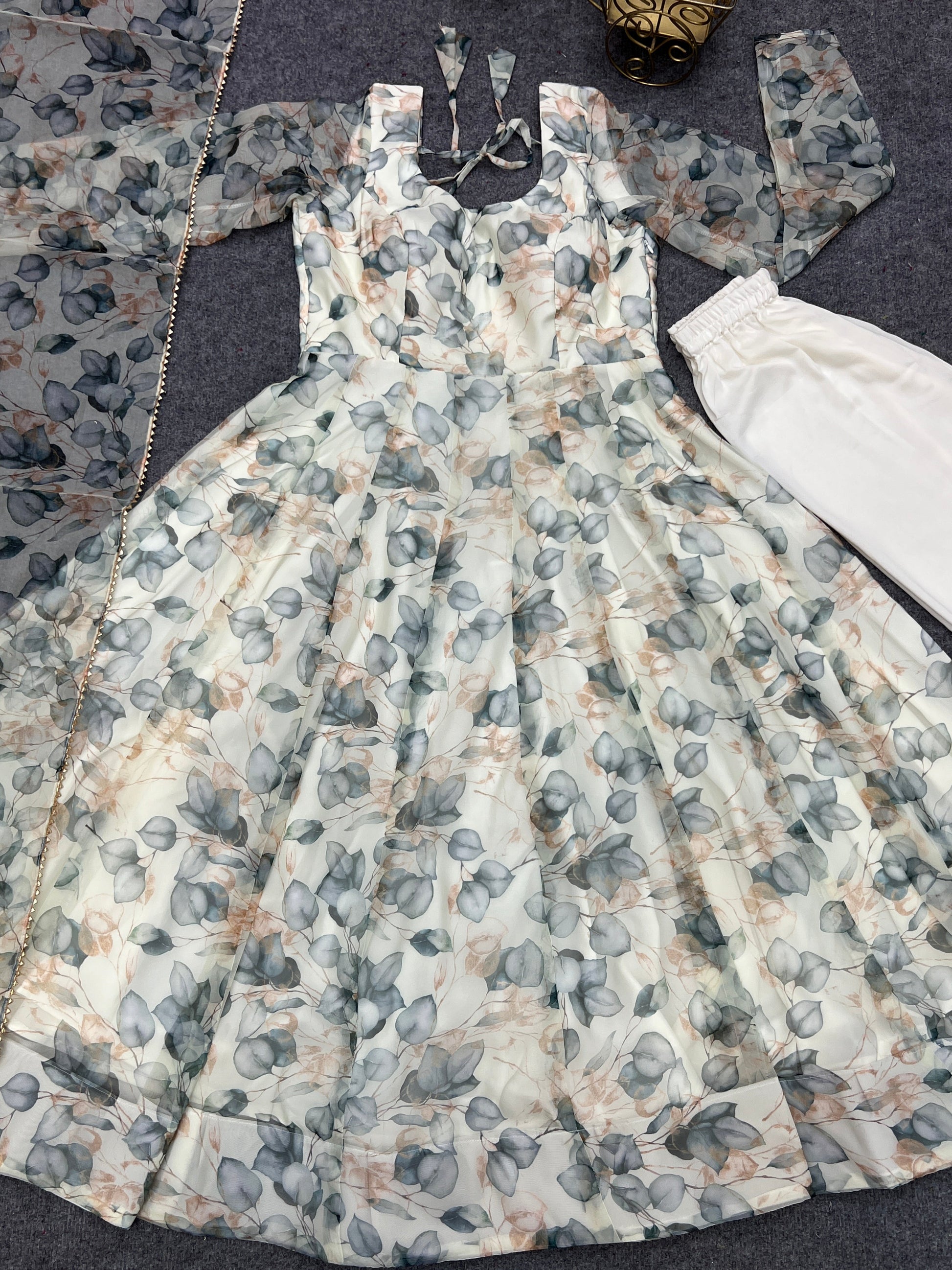 Amazing Readymade Organza Silk Floral Print Anarkali Gown Set