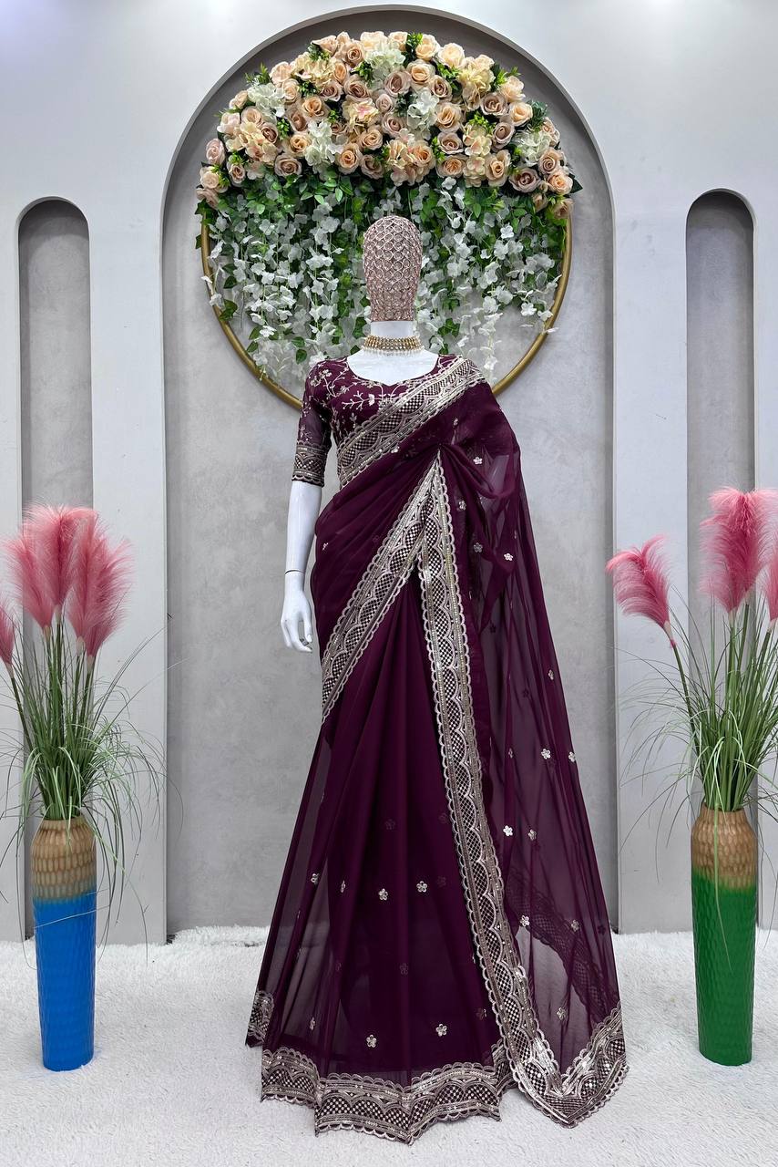Amazing Saree on Heavy Tibby Silk Fabric With Thread And Sequences Work