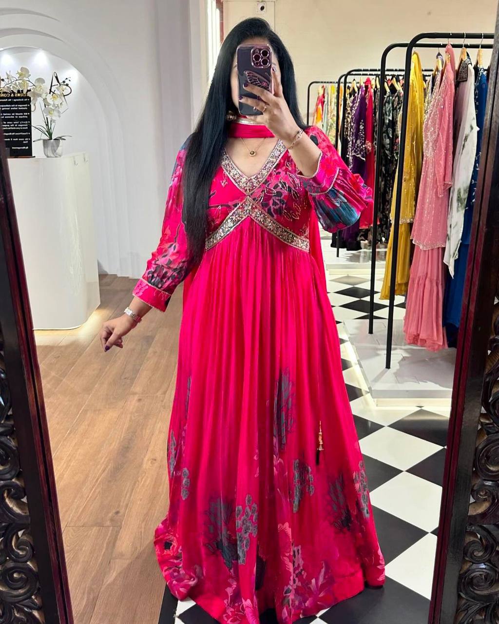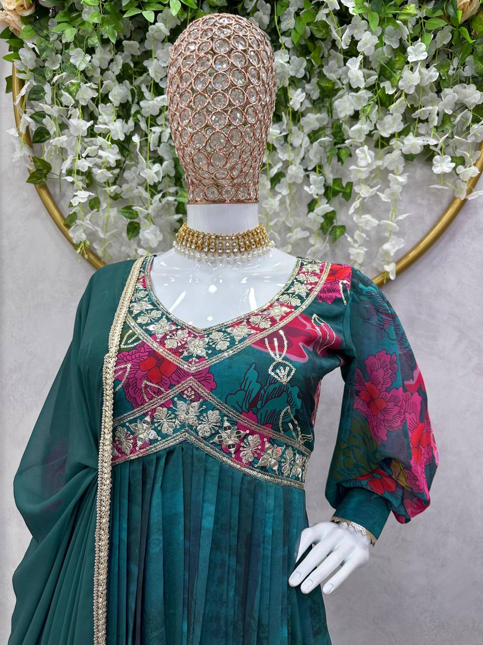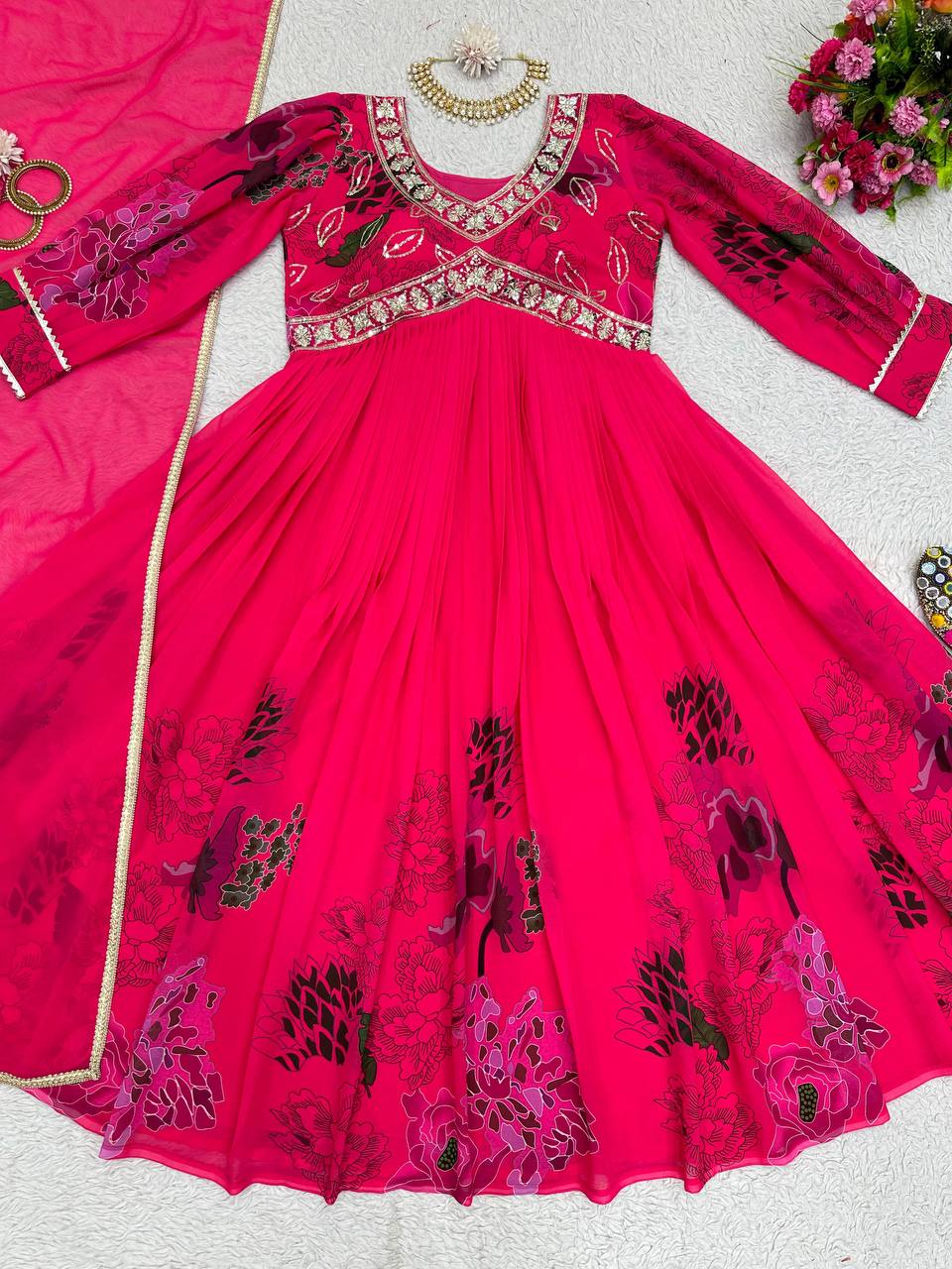 Designer Suit On Heavy Georgette Fabric And Dupatta With Fancy Lace