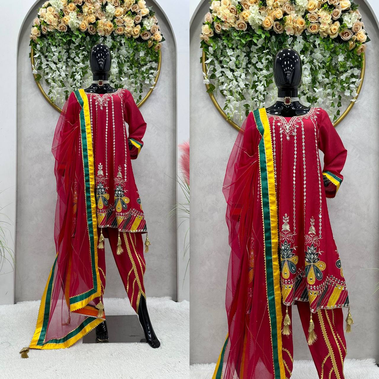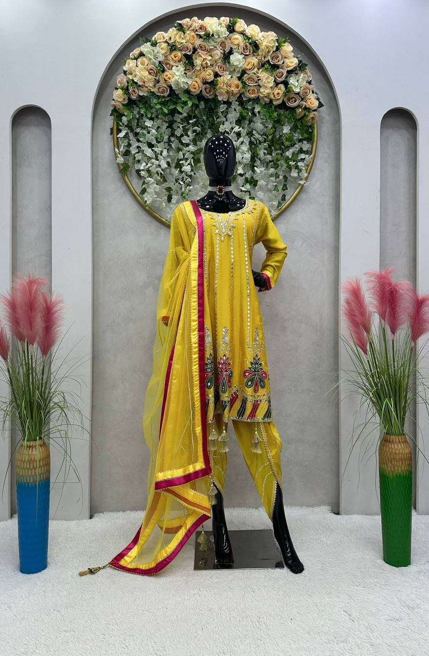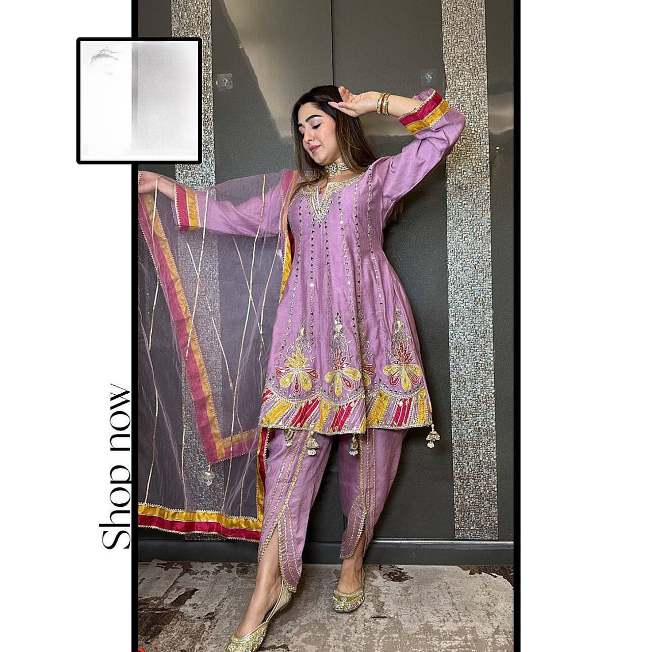 Beautiful Designer Outfit On Chinon Silk Febric With 9MM Sequnce And Thred Work Dhoti Suit