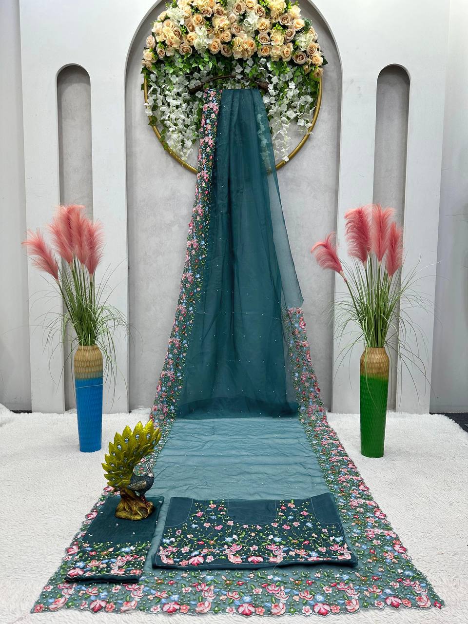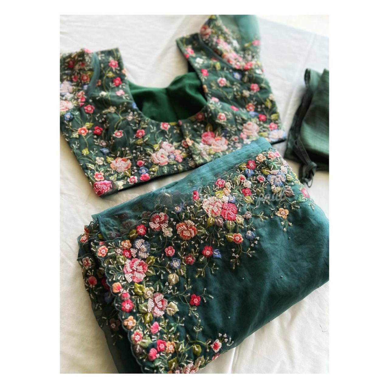 Beautiful Designer Saree Heavy Tibby Silk Fabric with Pearl Work