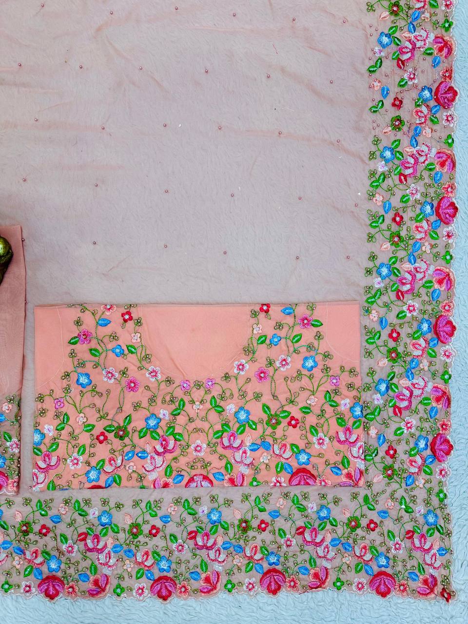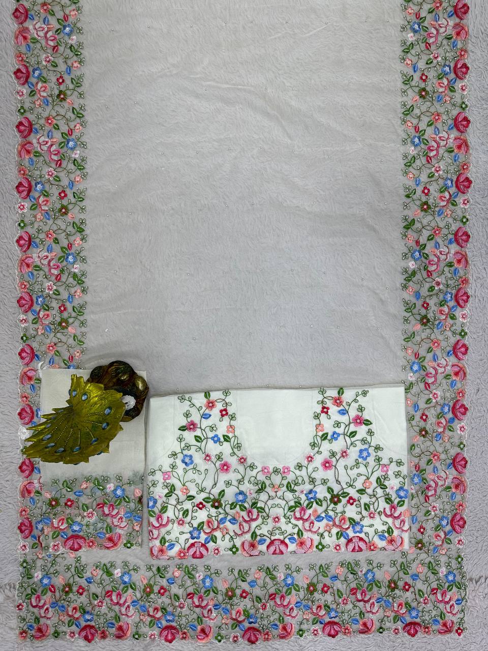 Beautiful Saree Heavy Tibby Silk Fabric with Pearl Work