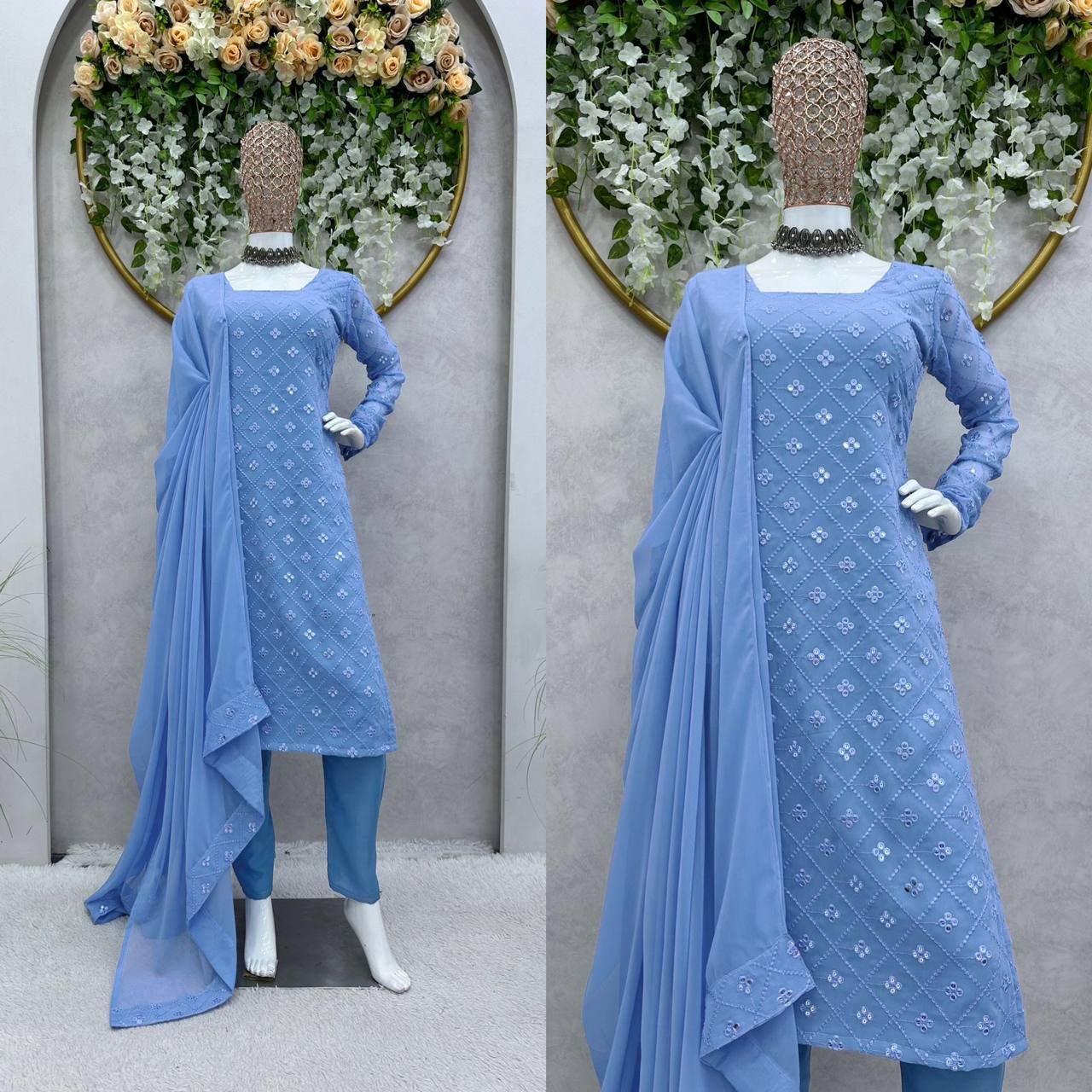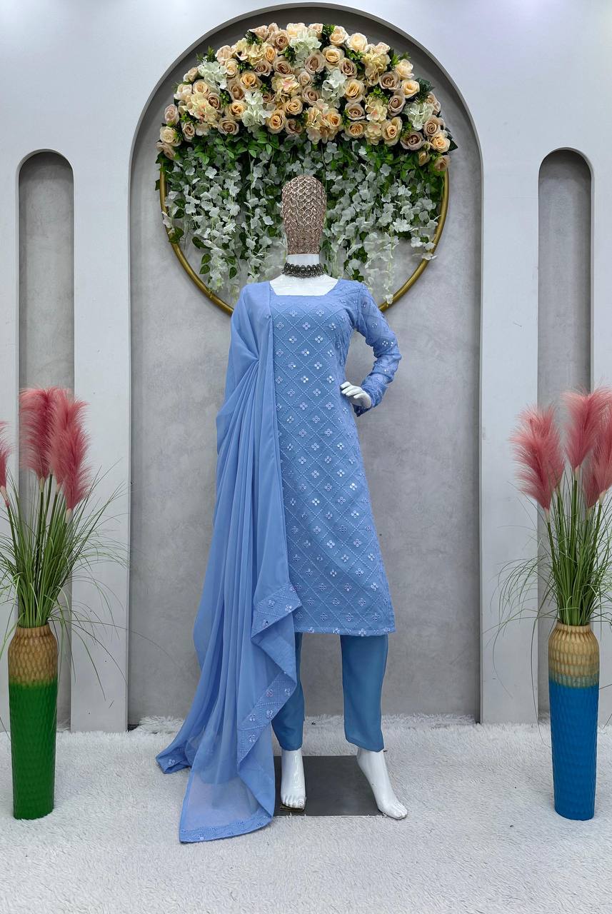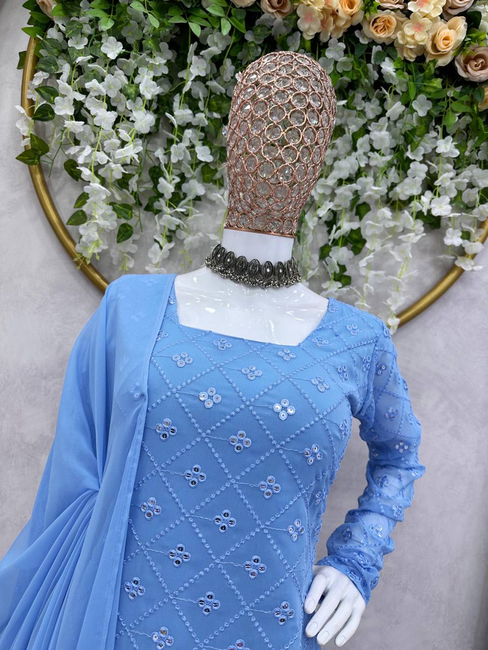 Looking for this same colour beautiful Designer Suit On Faux Georgette febric with inner & 9MM Sequnce work and Pet on Crep Febric and Dupatta on Faux Georgette Febric.