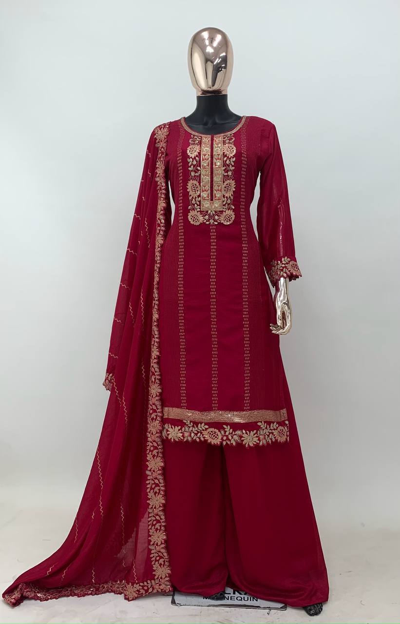 Beautiful Pink Colour Vichitra Silk Fabric Embroidery Work Fully Stitched Sharara Suit
