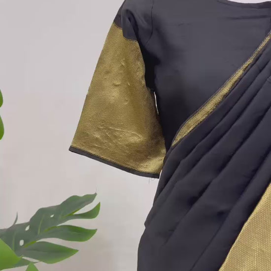 Black Color Kota Silk 1 Min Ready to Wear Saree