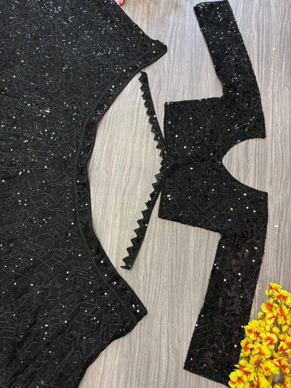 Blouse : *Premium Faux Georgette Embellished With Beautiful Thread Embroidery , Beautiful Coding Work And Heavy Sequins Work, Both Side Work Front And Back With Sleeves Work*( Unstitched Fabric )