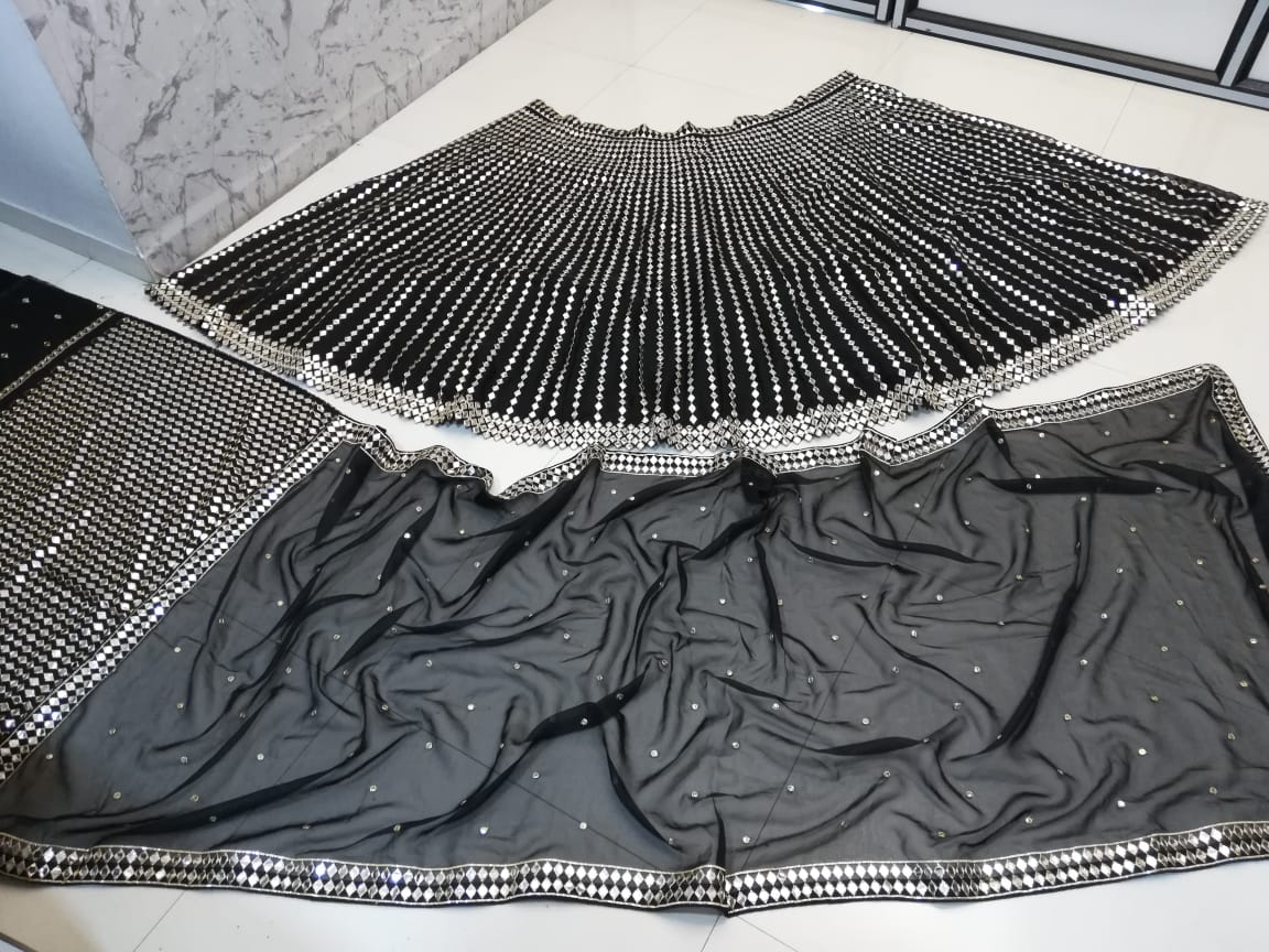 Black Organza Silk Pepar Mirror Worked Wedding Wear Lehenga Choli