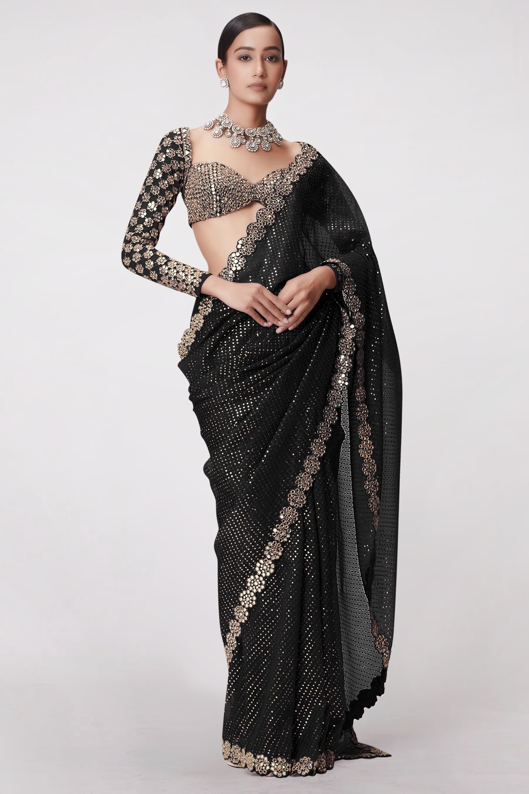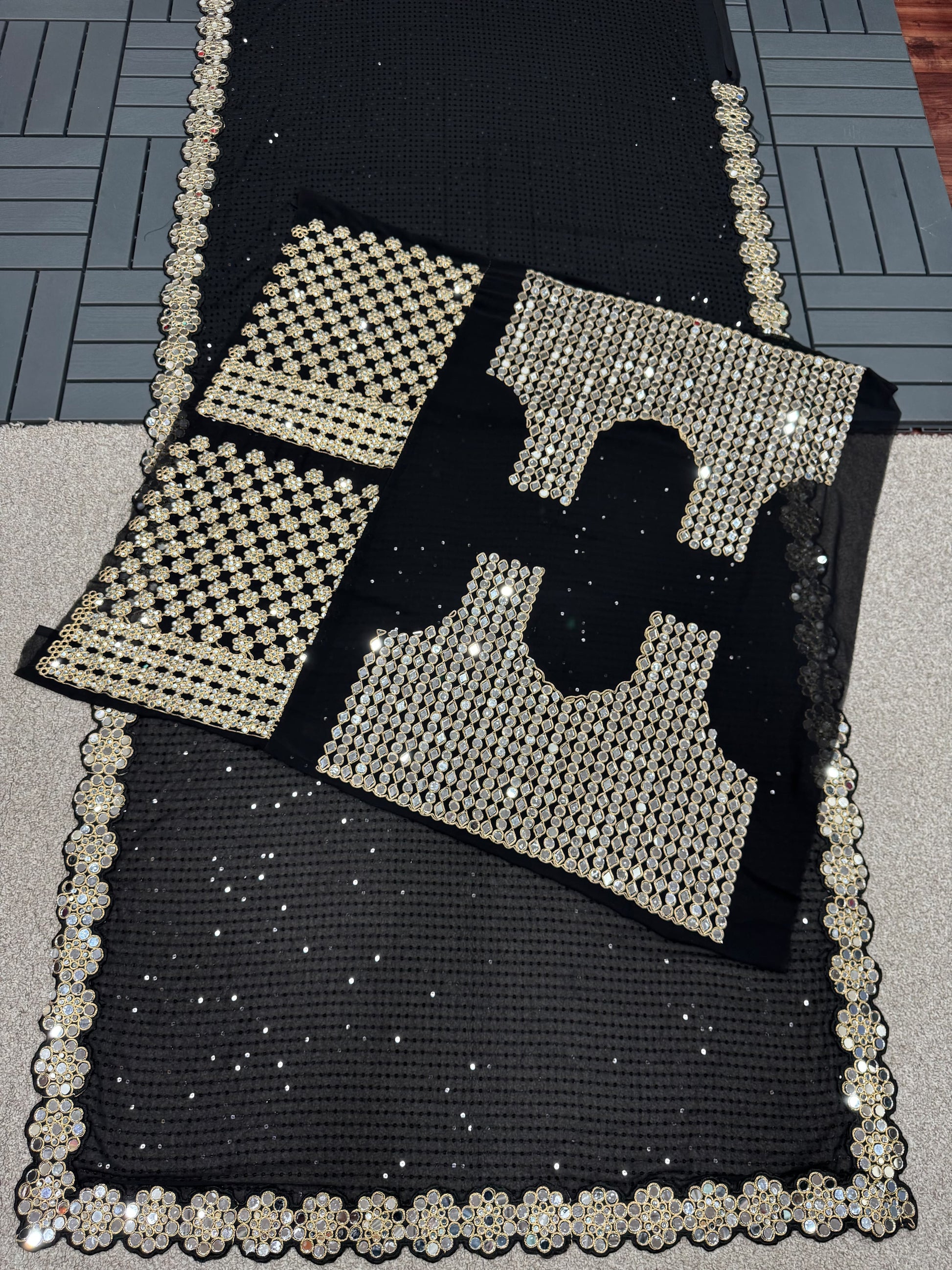 Black Color Real Mirror Work Georgette Saree