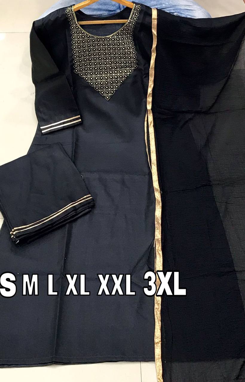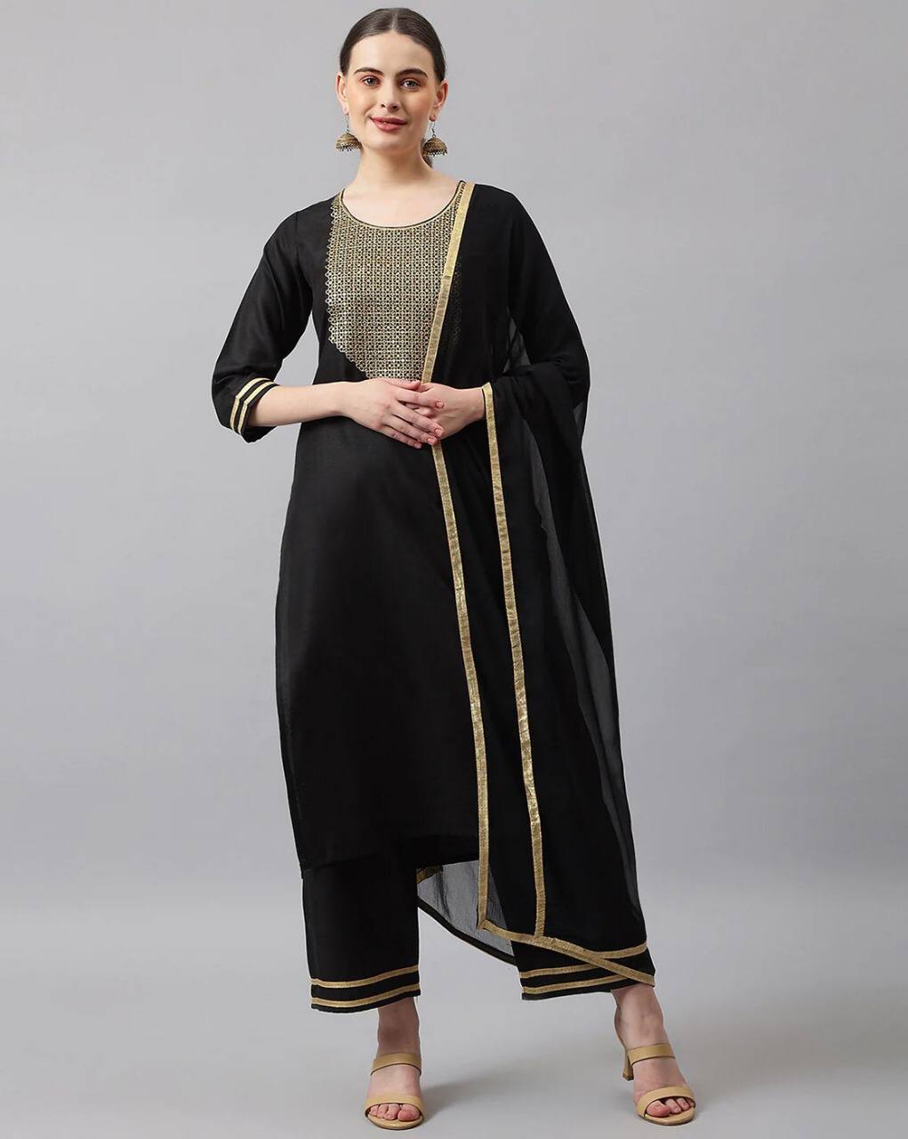 Black Slub Cotton Full Stitched Kurta Set For Girls