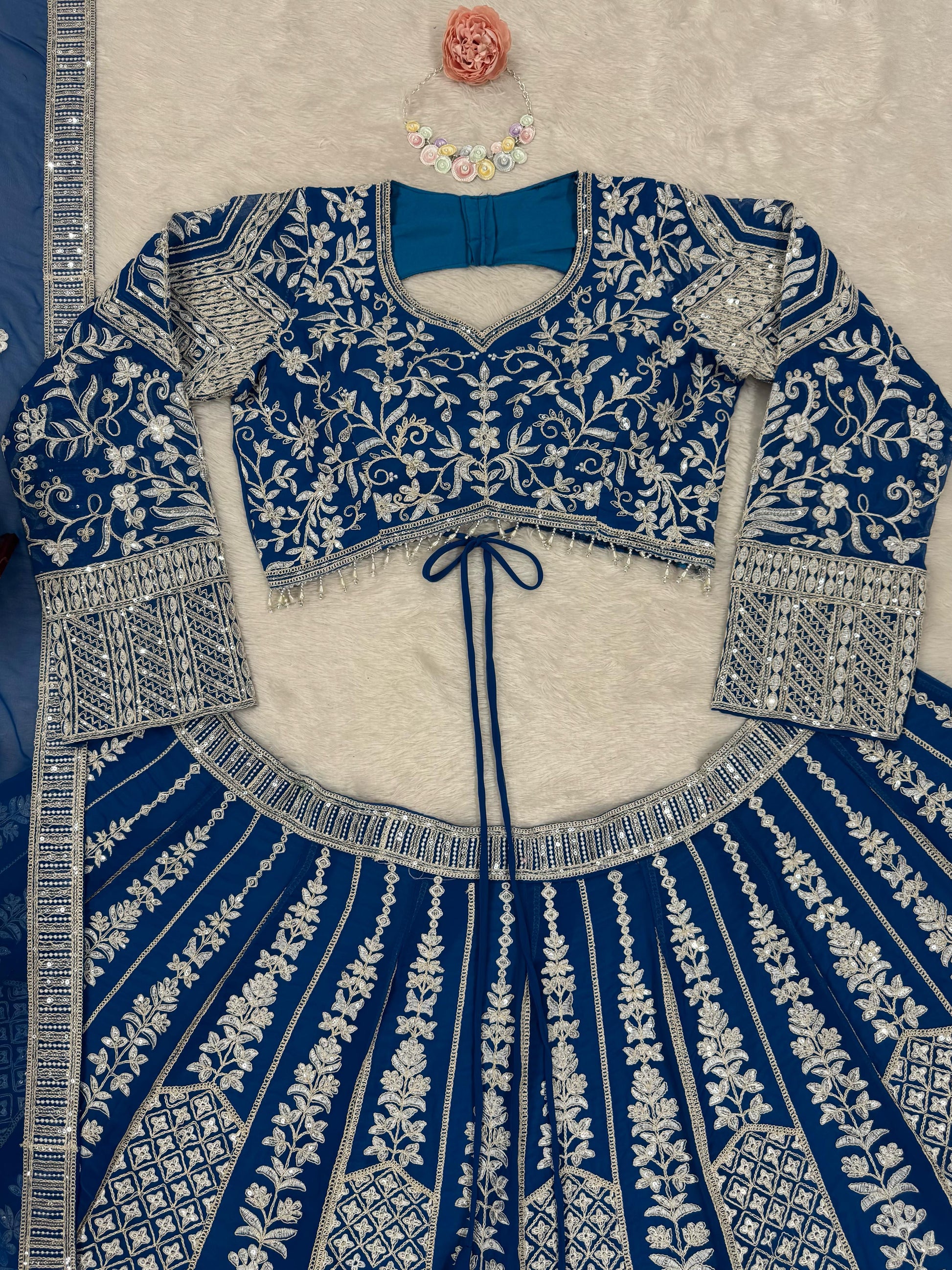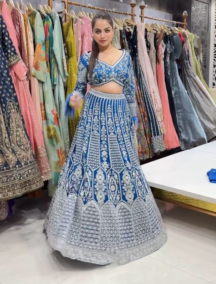Blue Color Georgette Coding Embroidered Work Lehenga Choli