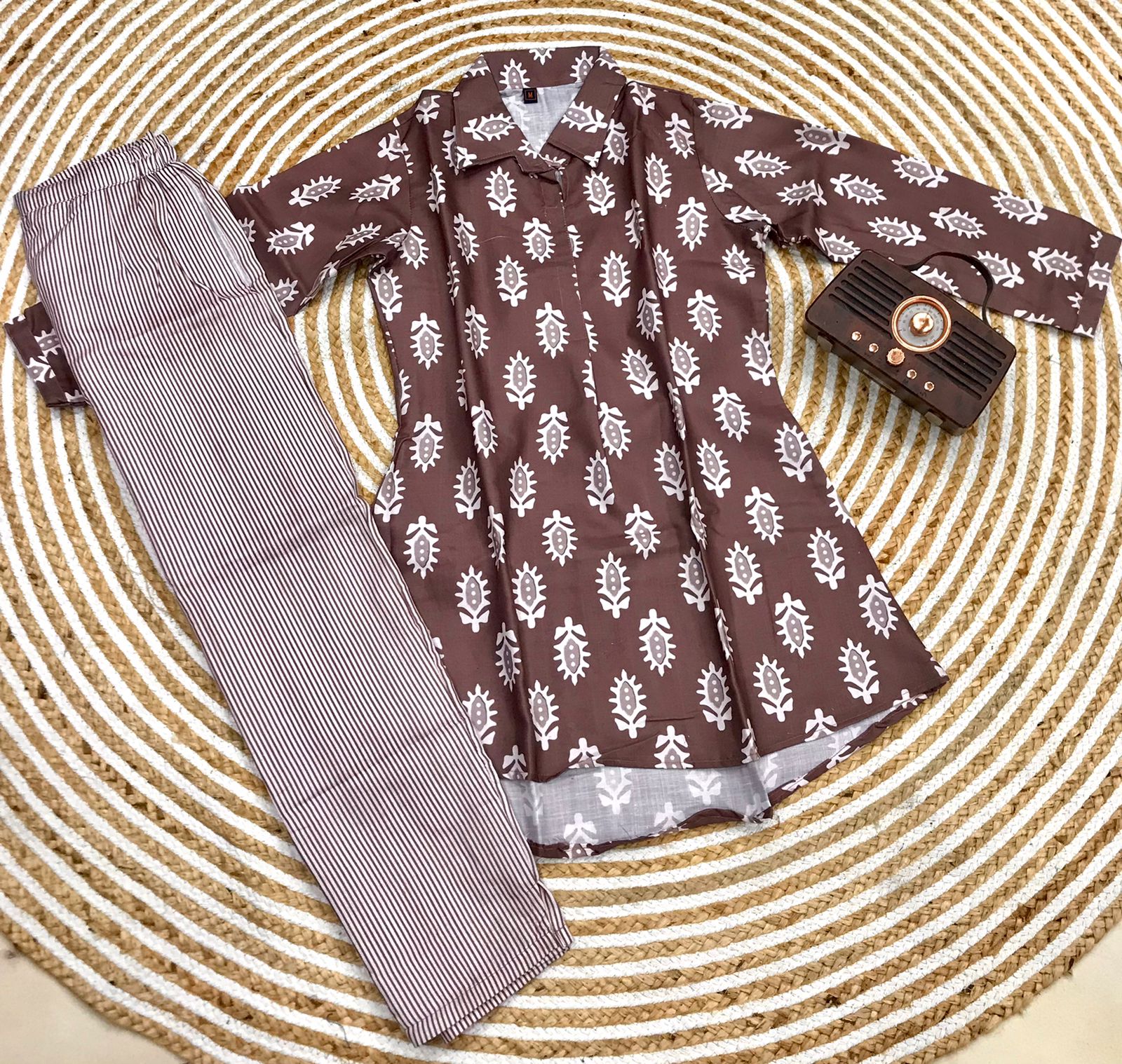 Brown Cotton Printed Ready to Wear Cord Set For Any Girls Wear