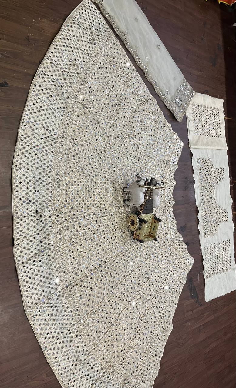 Classic Cream Color Satin Silk Real Mirror Embroidered Work Lehenga Chol