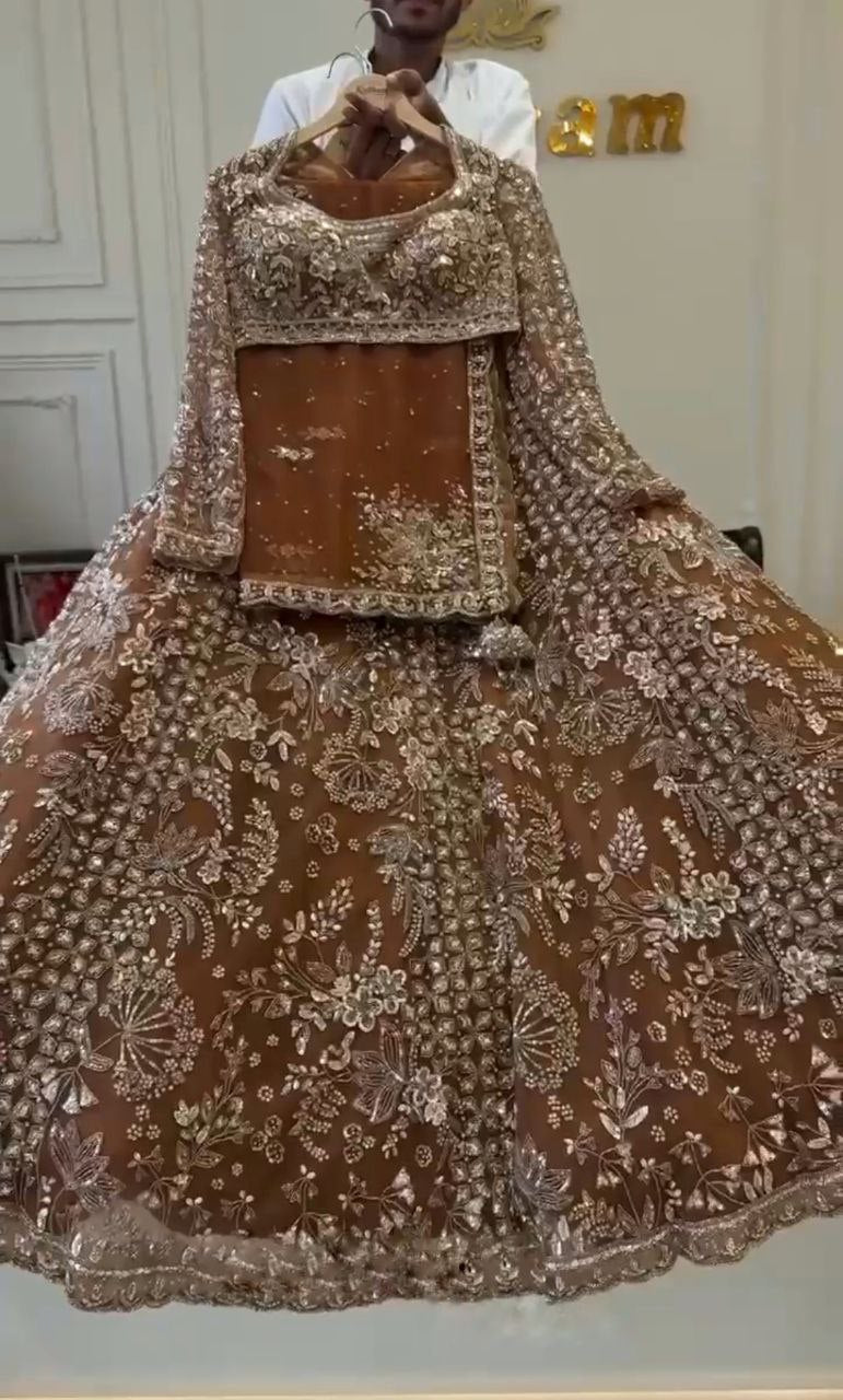Coffee Color Shining Net Lehenga Choli