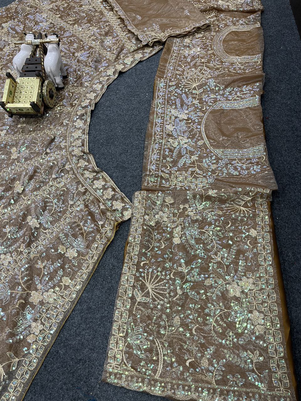 Lehenga work- Embroidery Sequins Cut Work With Cancan & Canvas Patta