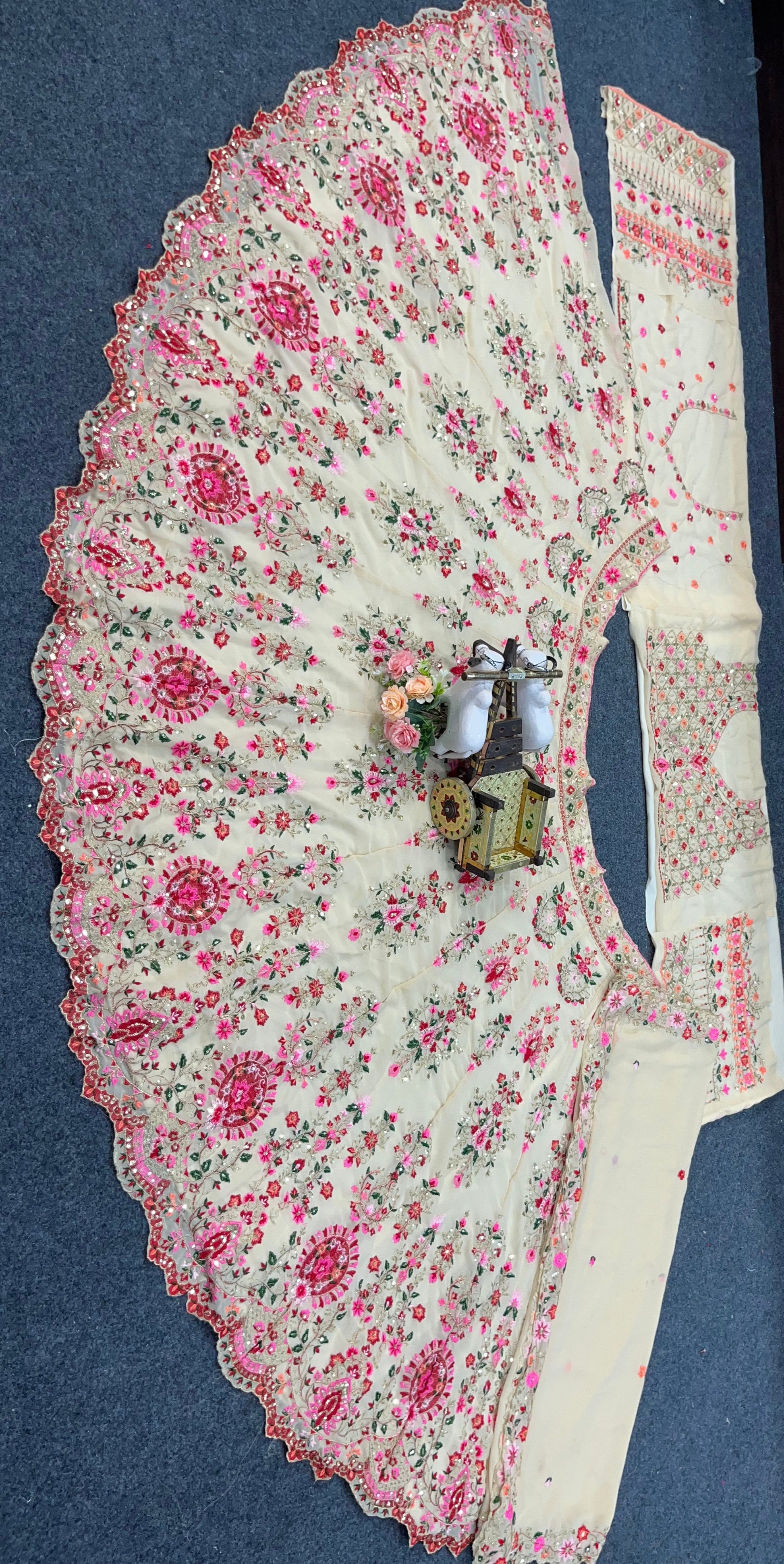 Cream Georgette Beautiful Thread Embroidered Lehenga Choli