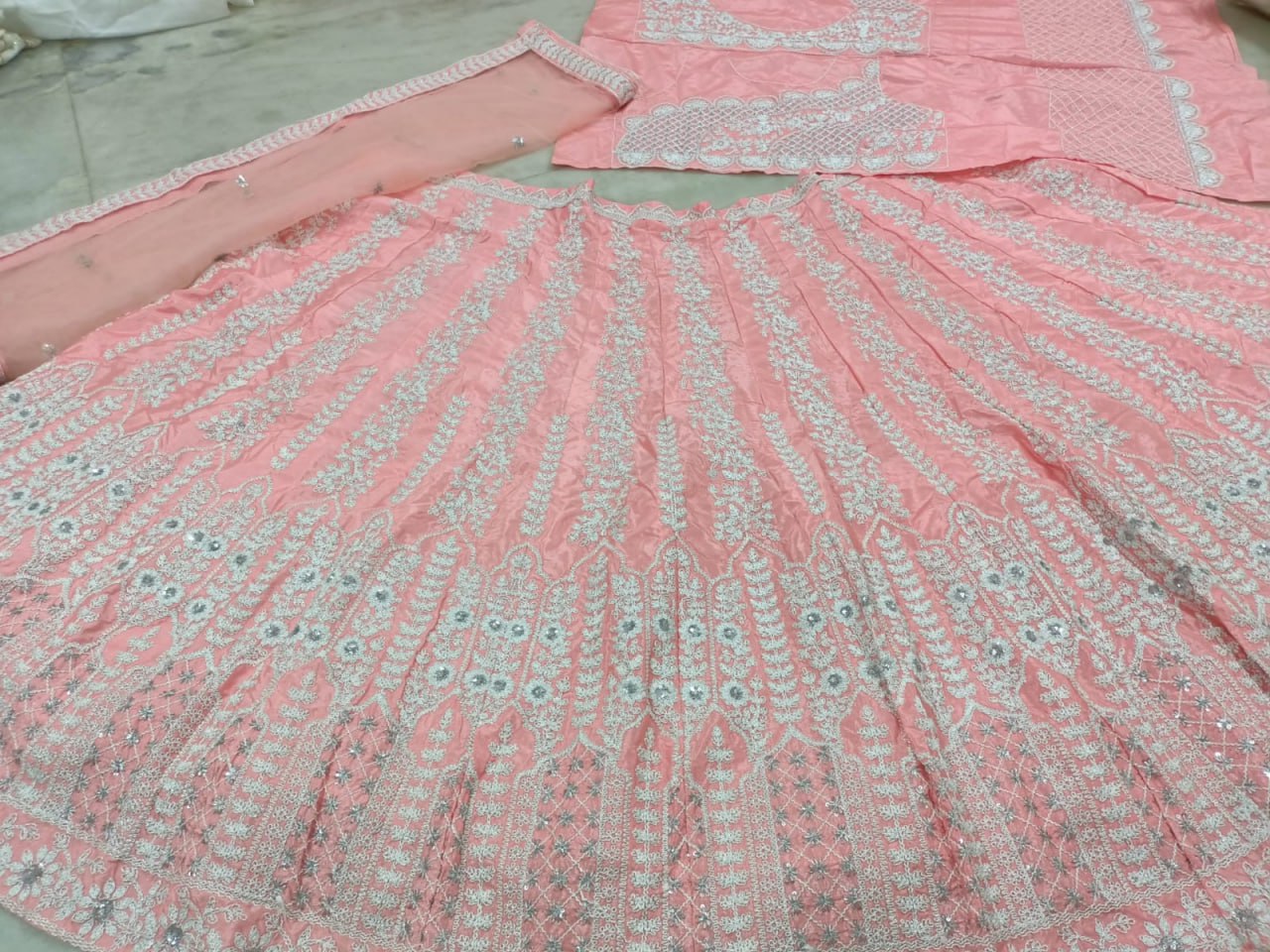 Dark Peach Color Chinon Silk Thread Work Lehenga Choli