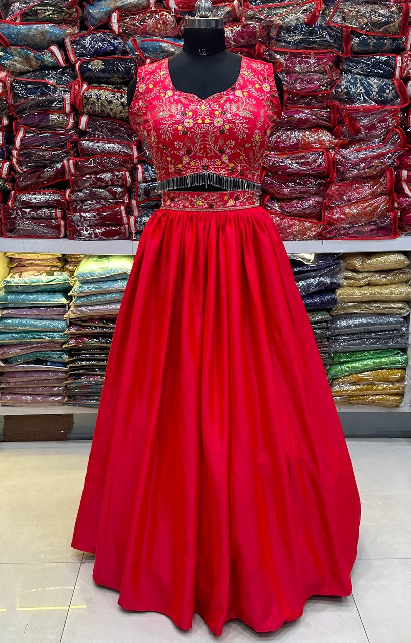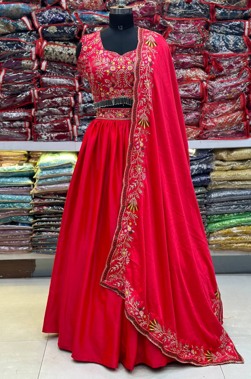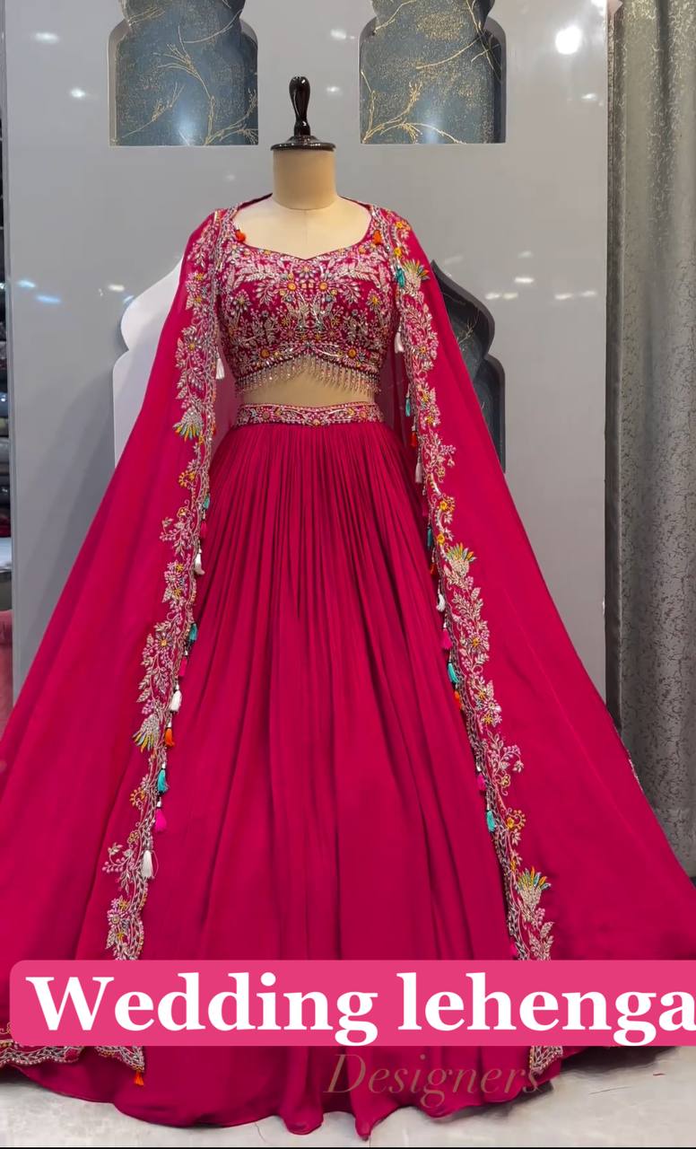 Designer Pink Colour Malai Silk Embroidery Design Work Legenga Choli