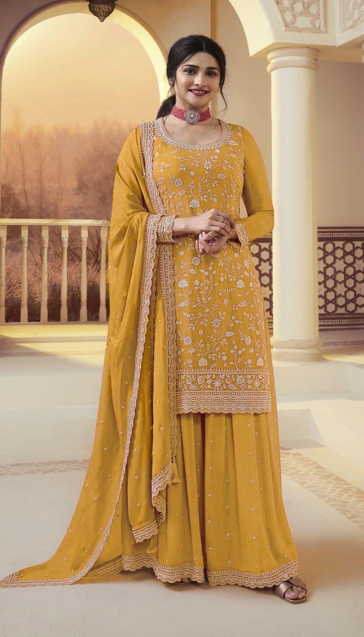 Fabulous Heavy Vichitra Blooming Fabric Embroidery Work Sharara Suit With Dupatta