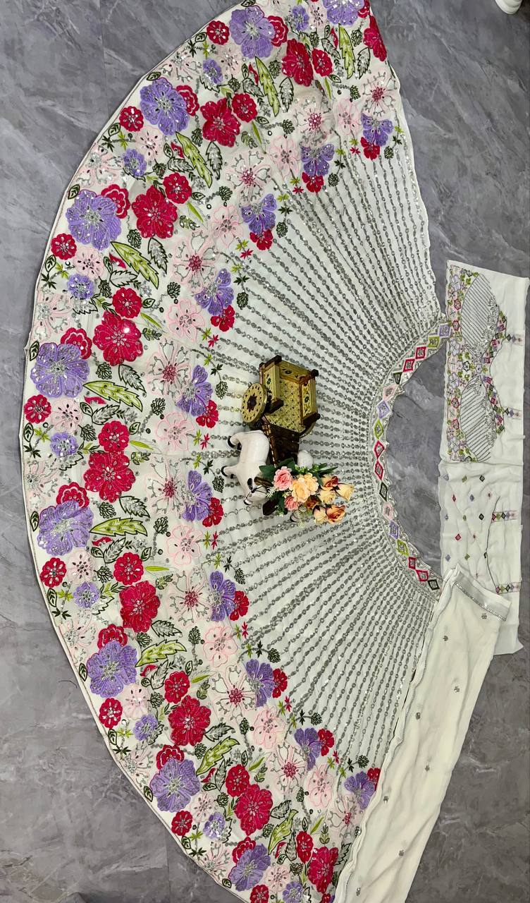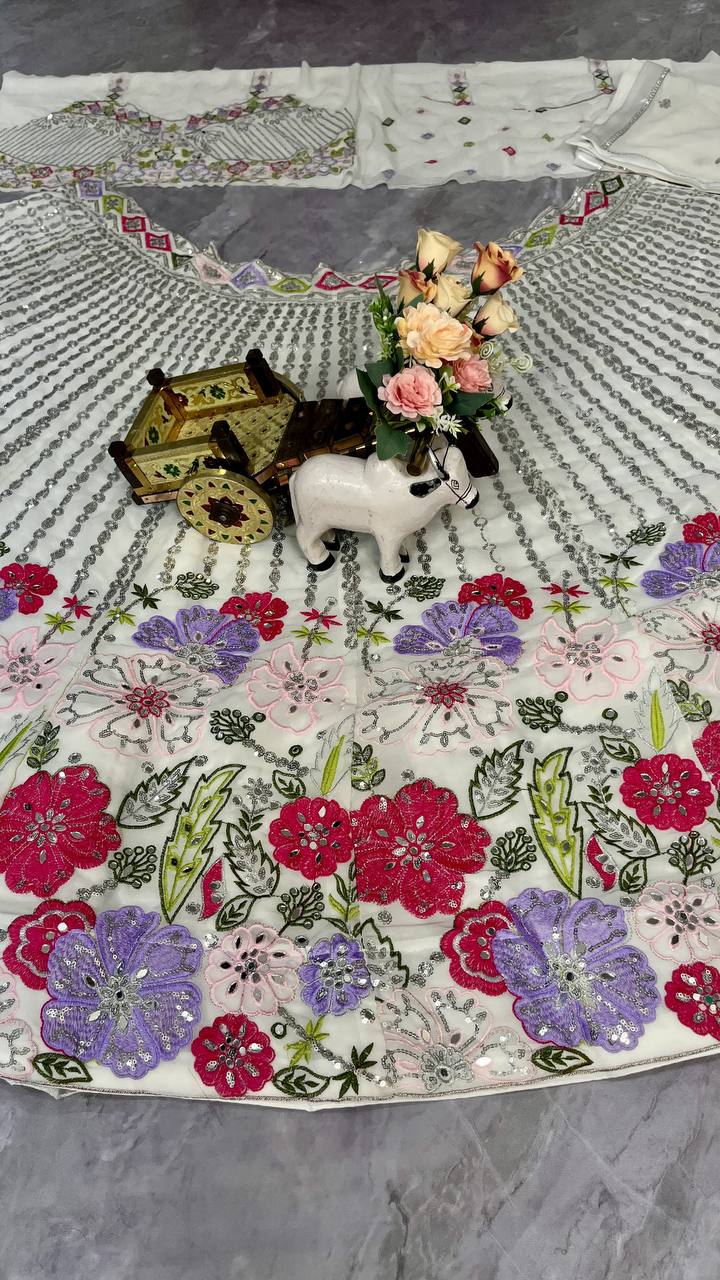 Wedding Wear Georgette Real Mirror Work Semi Stitched Lehenga Choli