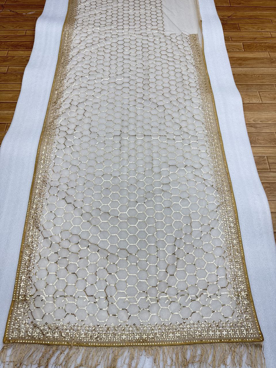 Cream Soft Net Sequence Embroidered Saree Blouse