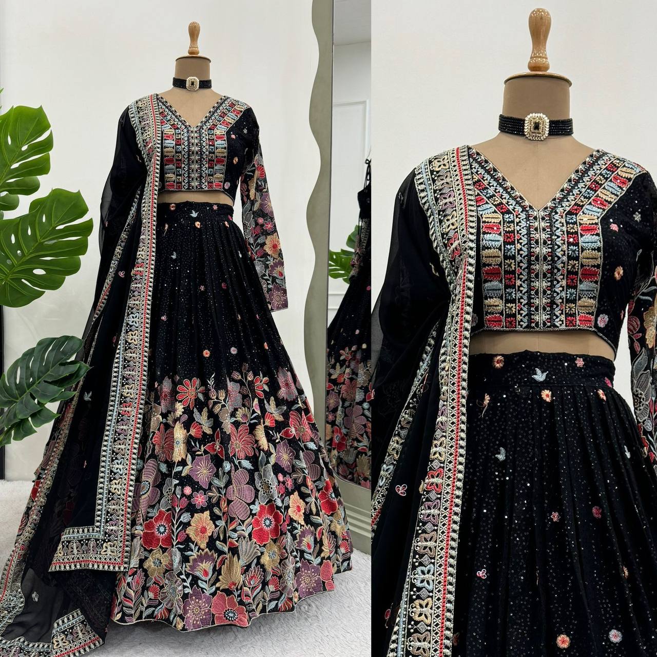 Gorgeous Black Colour Georgette Fabric Thread Work Wedding Wear Lehenga Choli