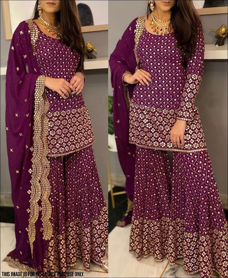 Gracefu Function Wear Wine Color Georgette Sequence Work Beautiful Sharara