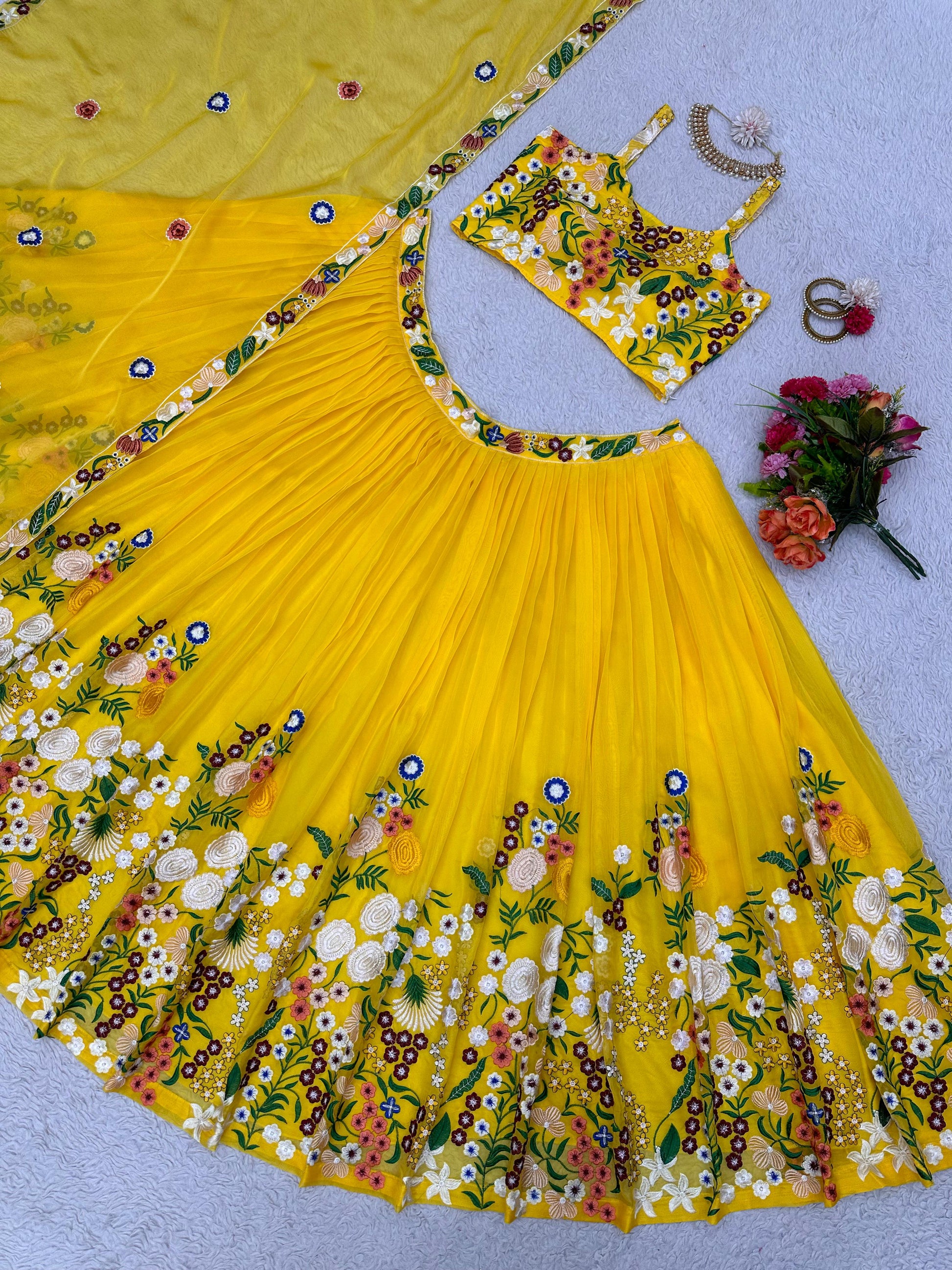 Haldi Function Tuby Silk Embroidered Semi Stitched Lehenga Choli