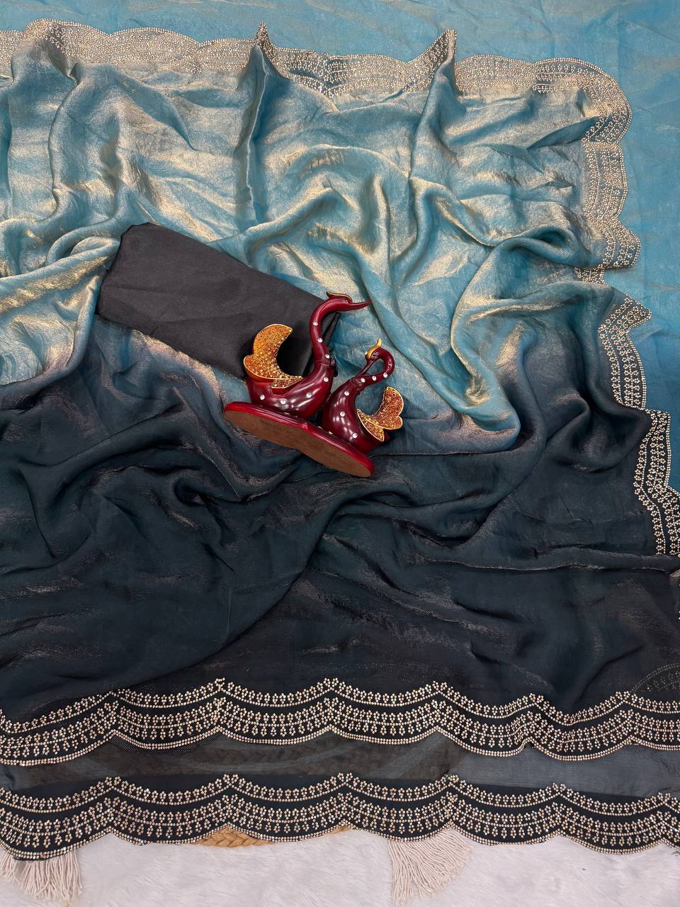 Luxurious Silk Saree with Shaded Diamond Jarkan Embellishment