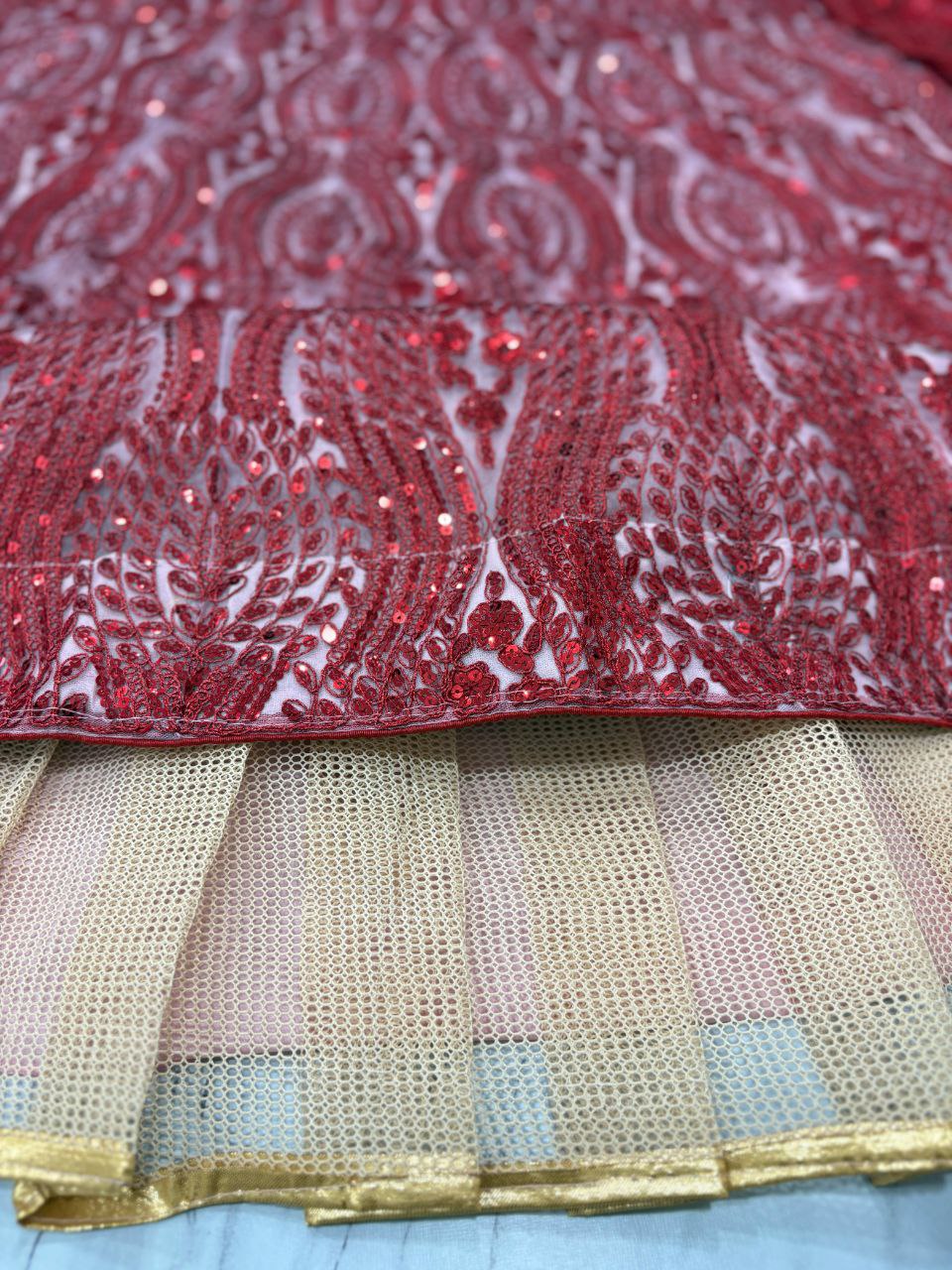 Blouse : Premium Net Embellished With Beautiful Embroidery, Beautiful Heavy Dual Sequins Work, Both Side Work Front And Back With Full Sleeves Work*( Unstitched 1 Mtr Fabric )