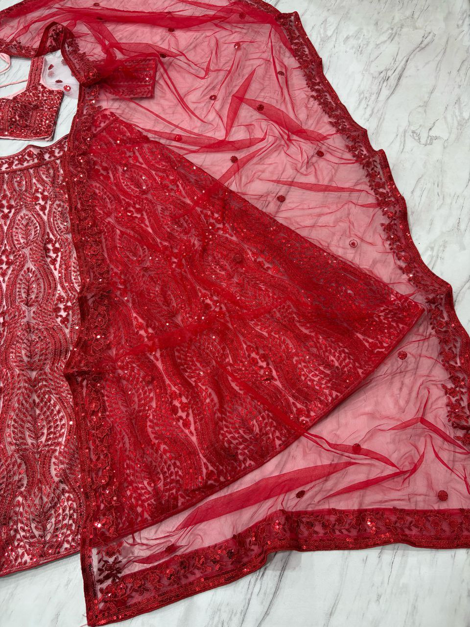 Lehenga : Premium Net Embellished With Beautiful Embroidery, Beautiful Heavy Dual Sequins Work With Heavy Cancan And Canvas With Double Inner Covering With Flair 3.5 Mtr ( Semi Stitched Upto Xxl )