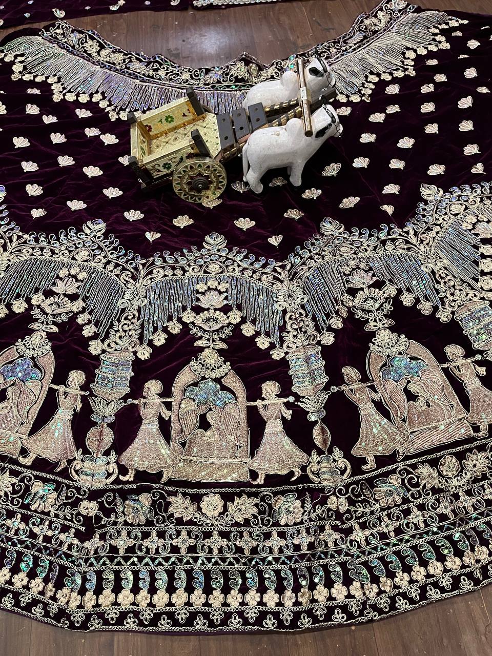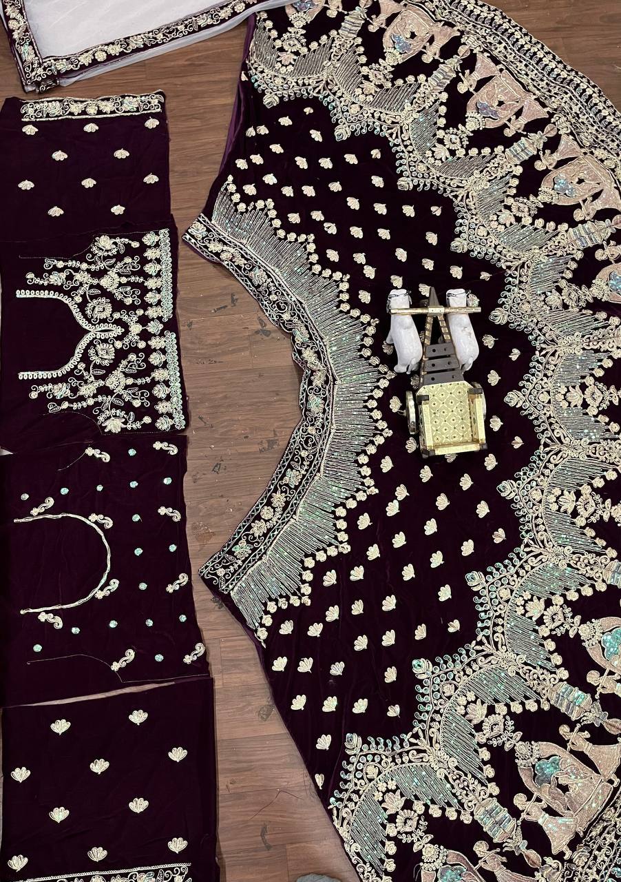 Wedding Wear Maroon Velvet Heavy Embroidered Work Lehenga Choli