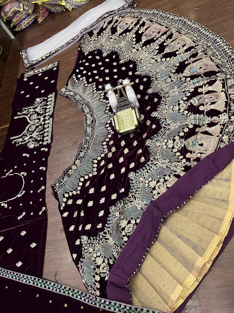 Maroon Velvet Heavy Work Lehenga Choli