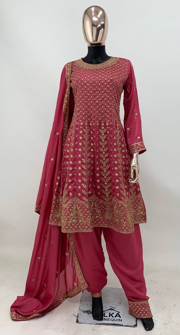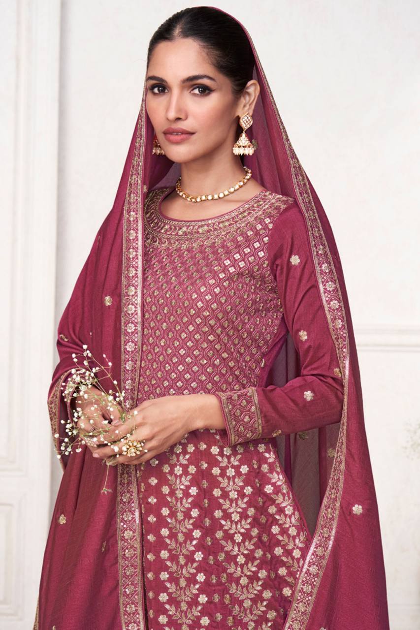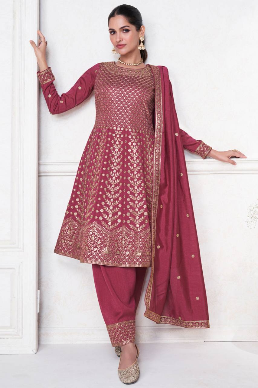 New Designer Pink Salwar Suit Vichitra Fabric For Women