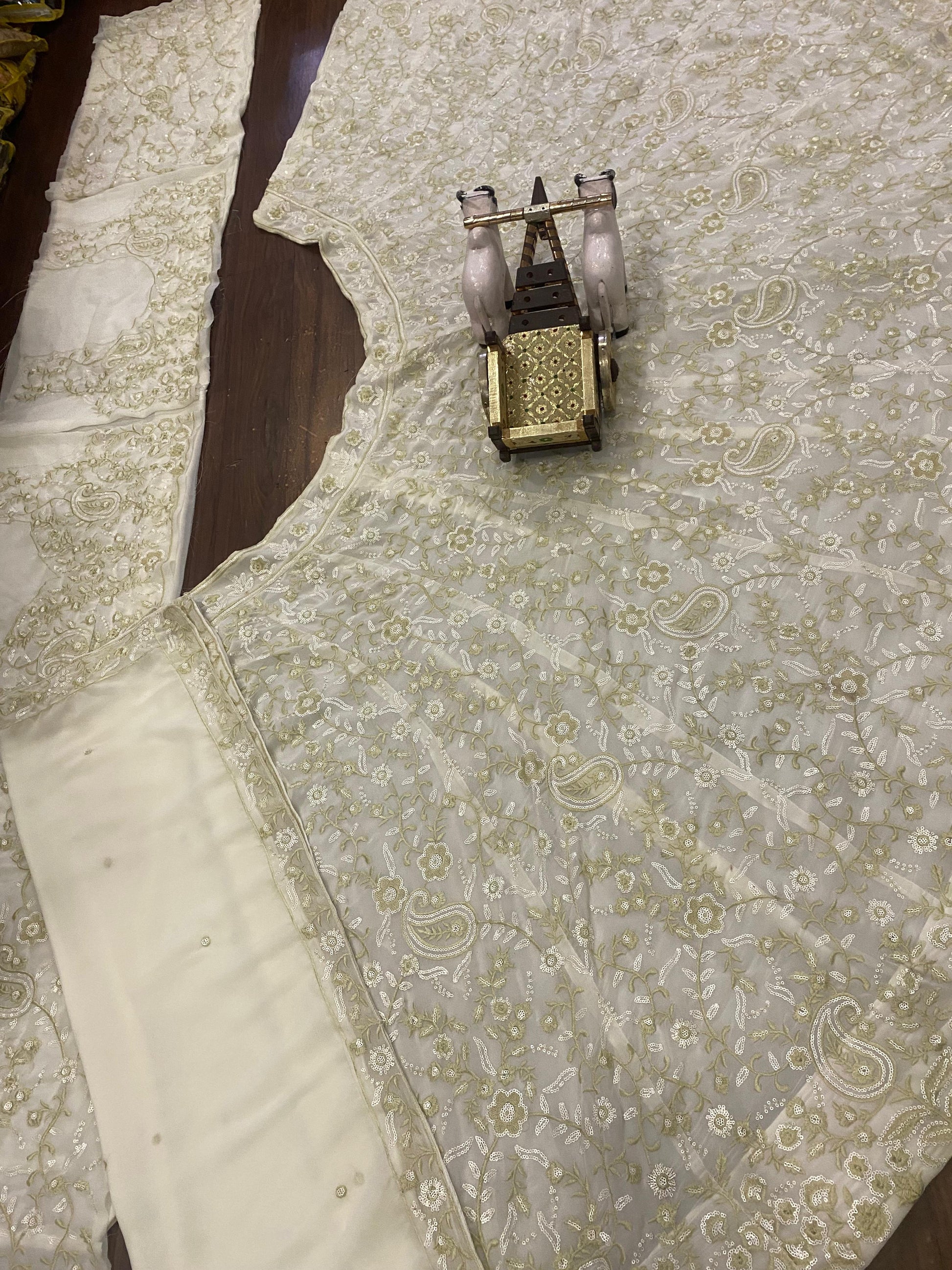 Off White Georgette Sequence Work CanCan Lehenga Choli