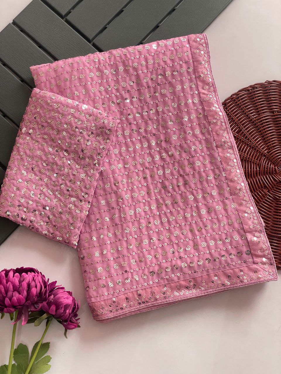 5mm Sequins & Multy Embroidery Work Done On Saree