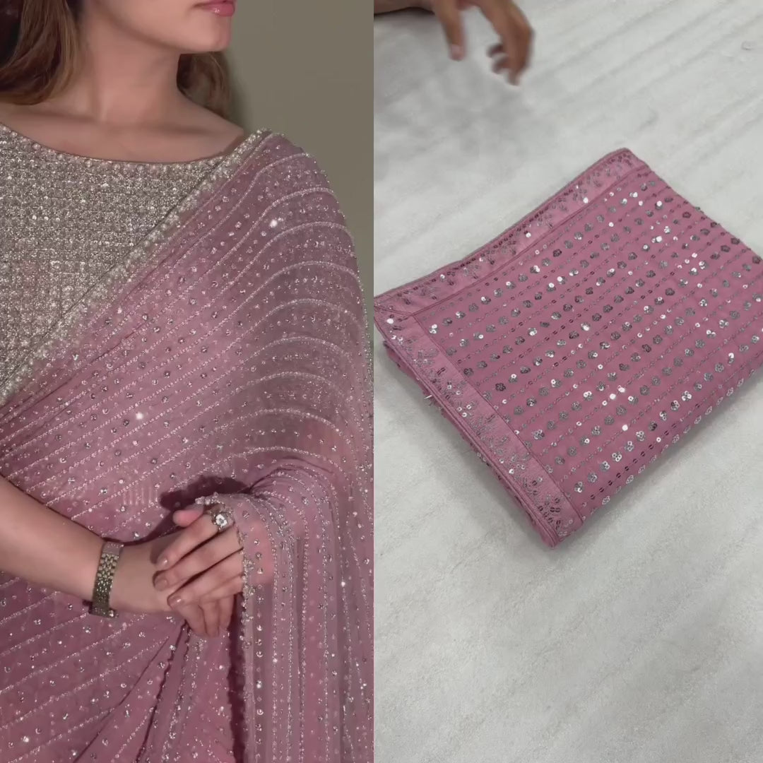 Party Wear Georgette Saree With Heavy Sequins Embroidery