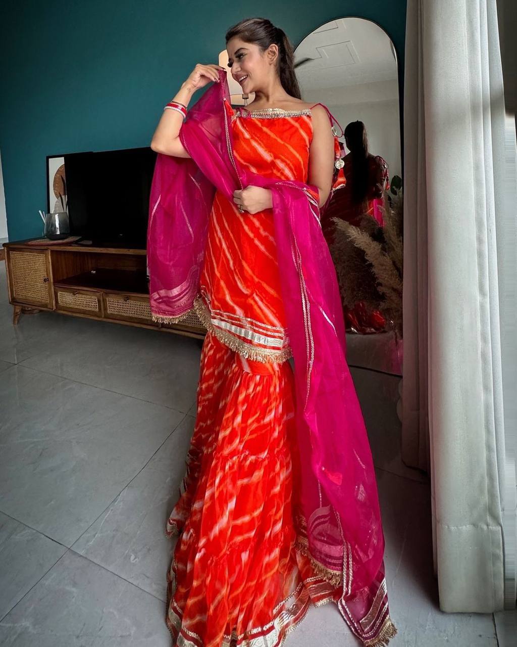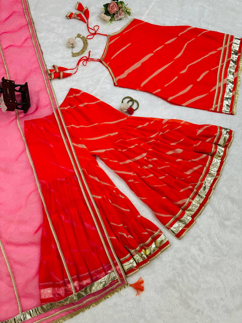 Orange color Georgette Ready Made Sharara Suit Set For Women