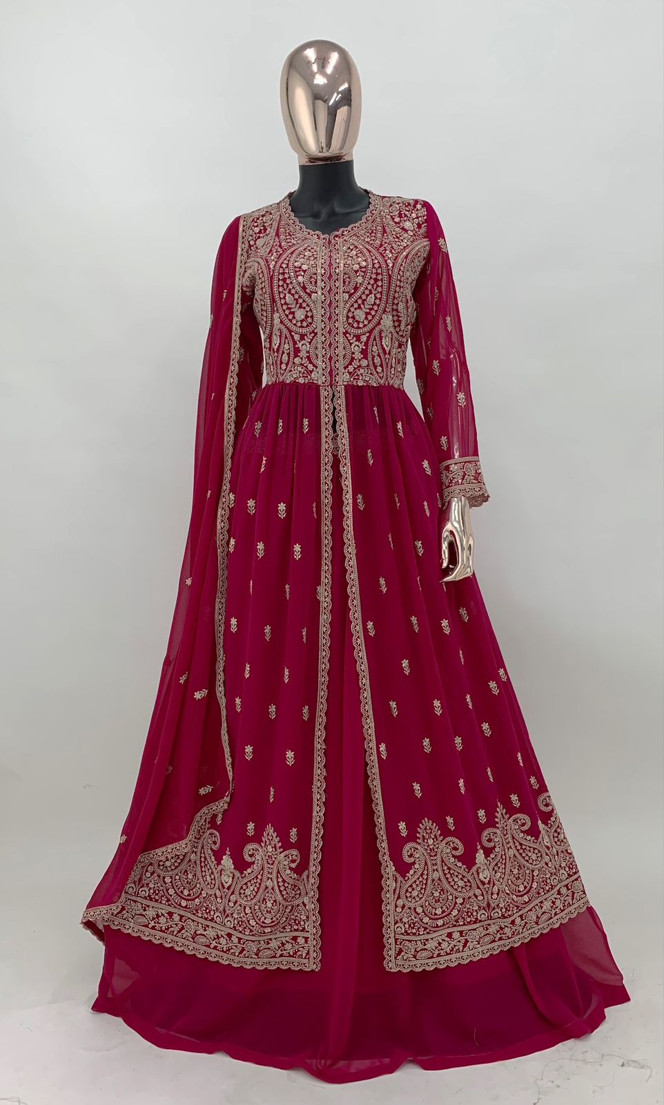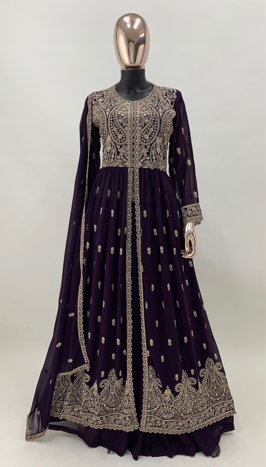 Party Wear Georgette Embroidered Long Anarkali Stitched Suit