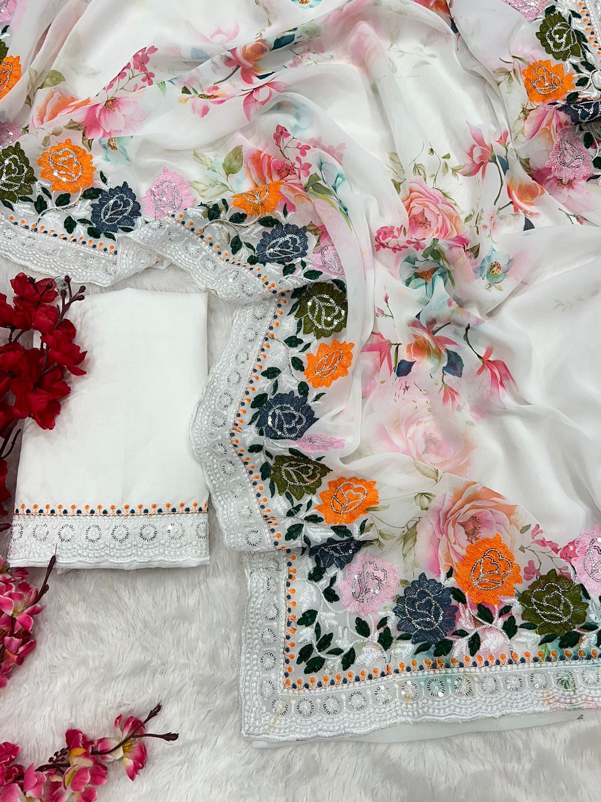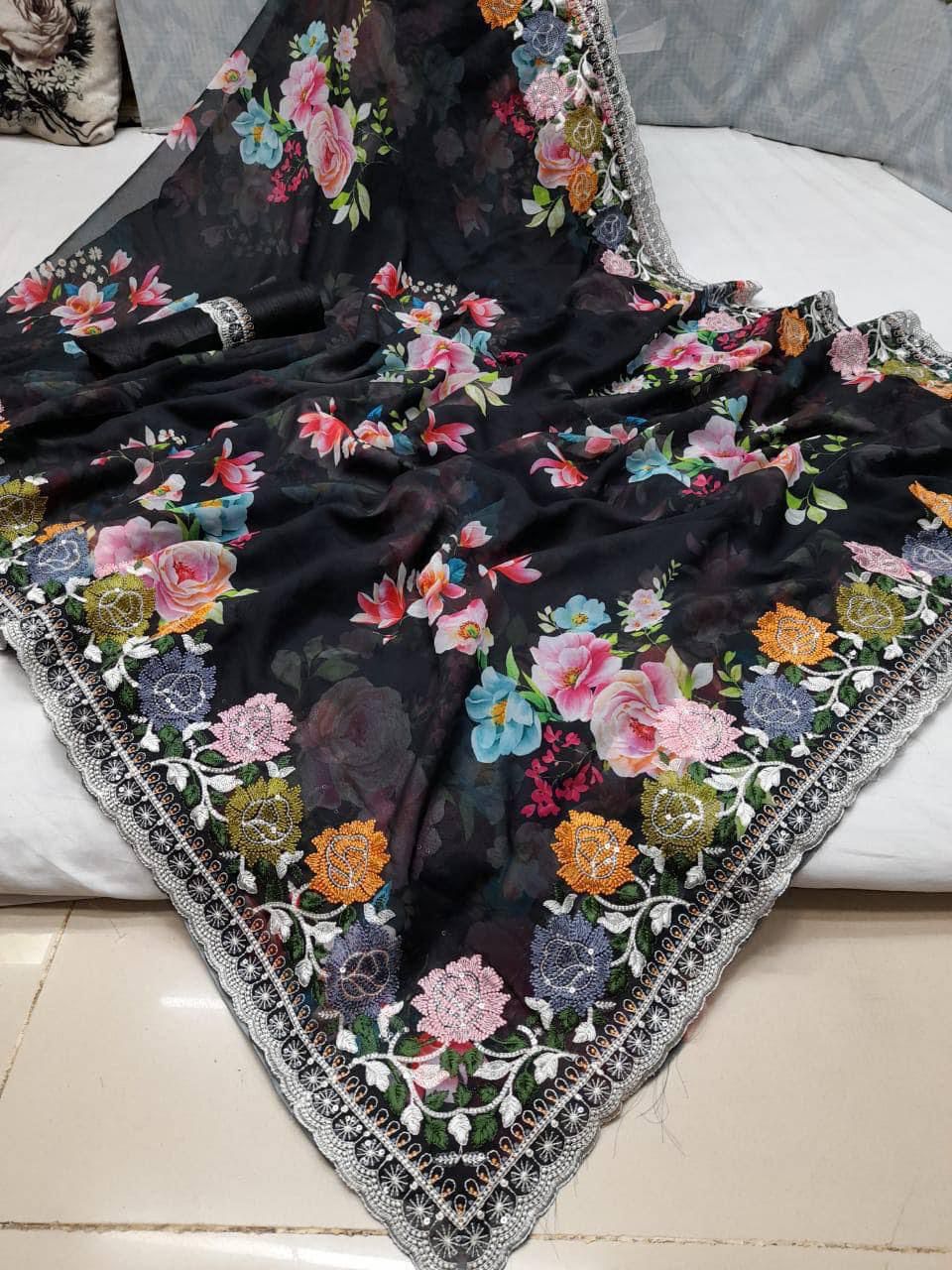 Georgette With Beautiful Heavy 3MM Sequence Work C-Pallu