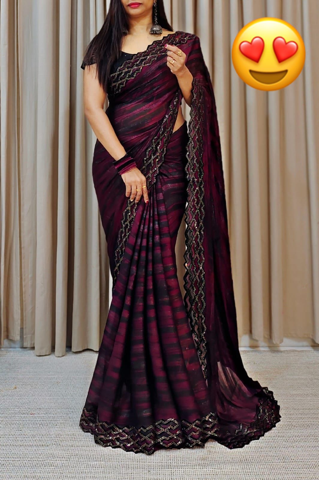 Saree work- 9000 Velvet cut work border with swarovski work