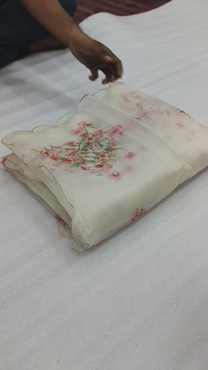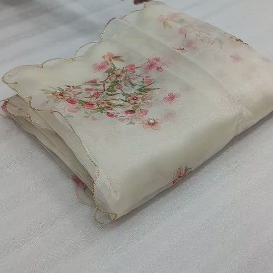Party Wear Soft Organza Silk Digital Print Khatali Hand Work Saree Blouse