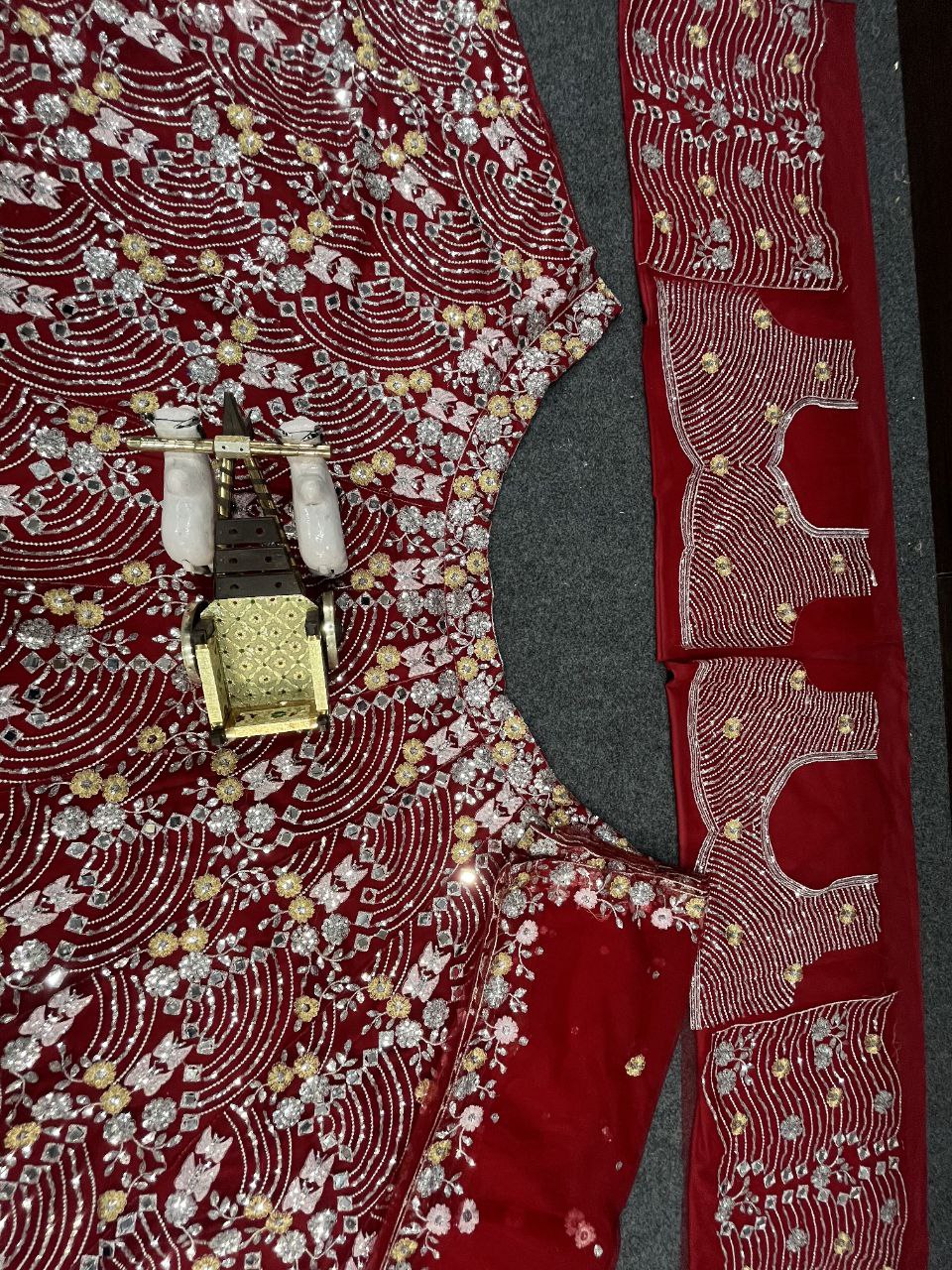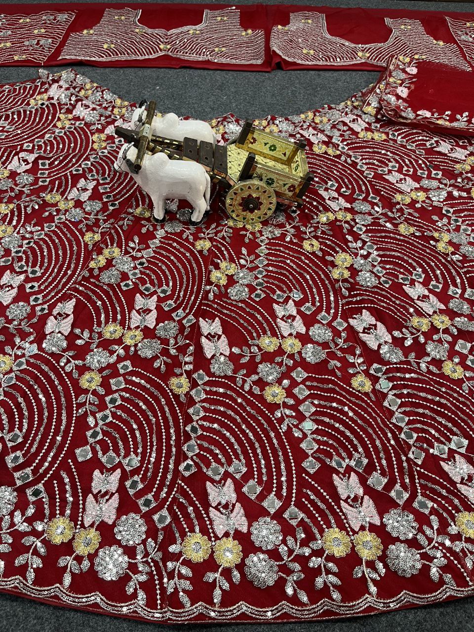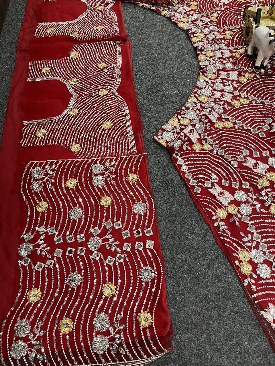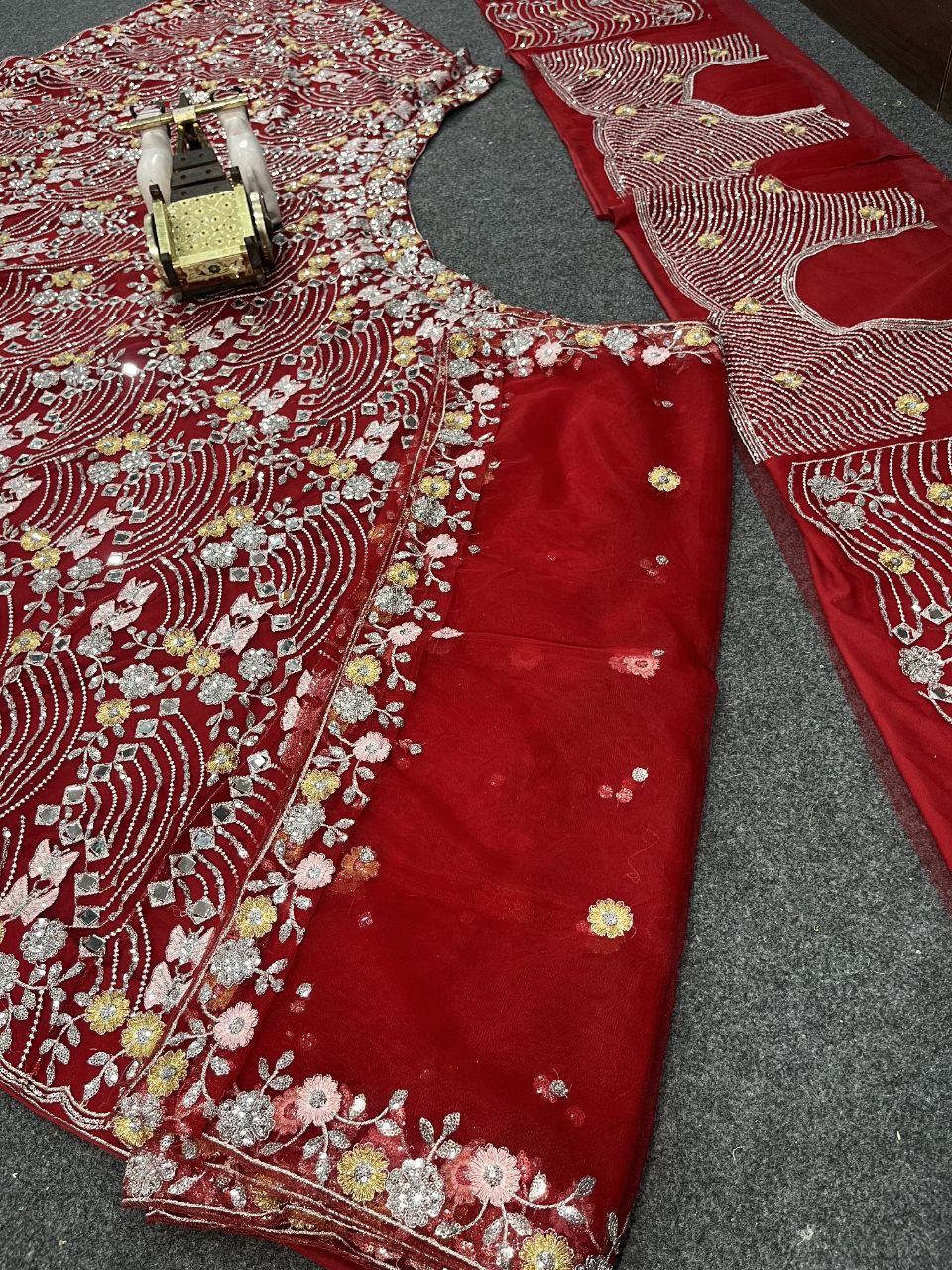 Lehenga work-Real Mirror Embroidery Sequins Work With Cancan & Canvas Patta
