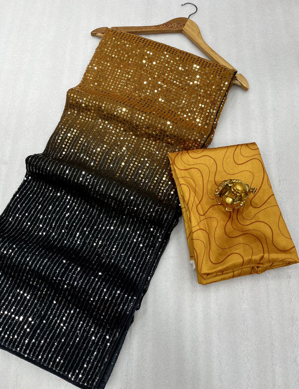 Full Saree Of Georgette PADDING with Heavy 3+5 Sequence Embroidery work on Saree