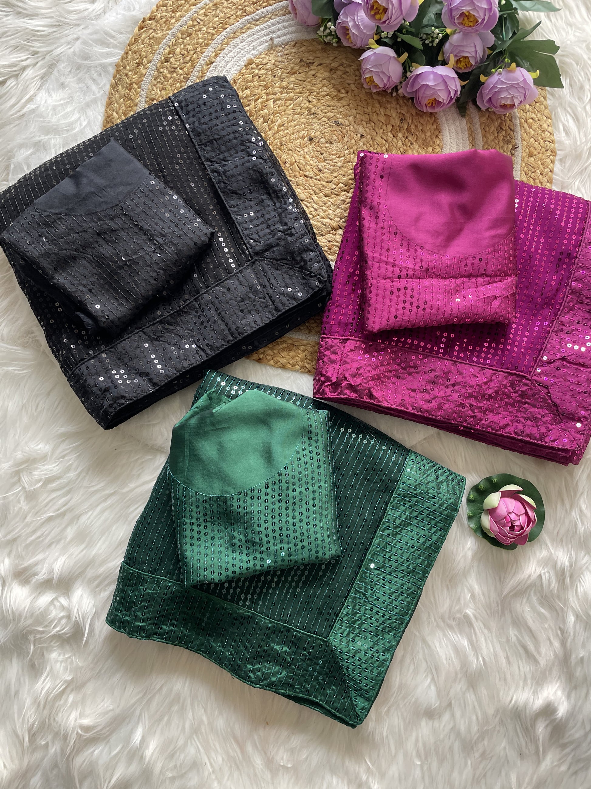 Full Saree Of Georgette With Heavy 5MM Sequence Embroidery Work – Saree Length: 5.5 Meter