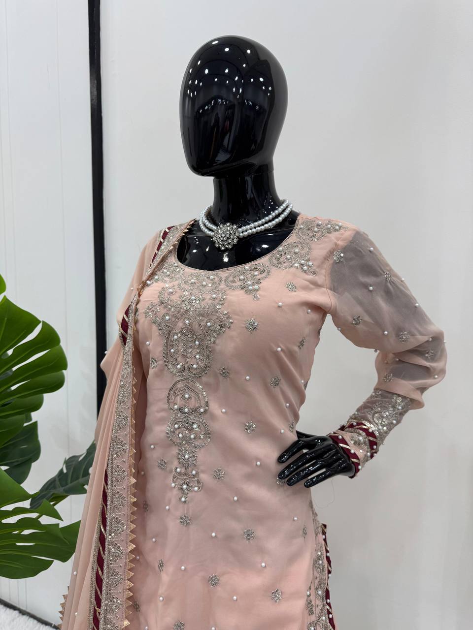 Peach Color Fully Stitched Georgette Sharara Suit